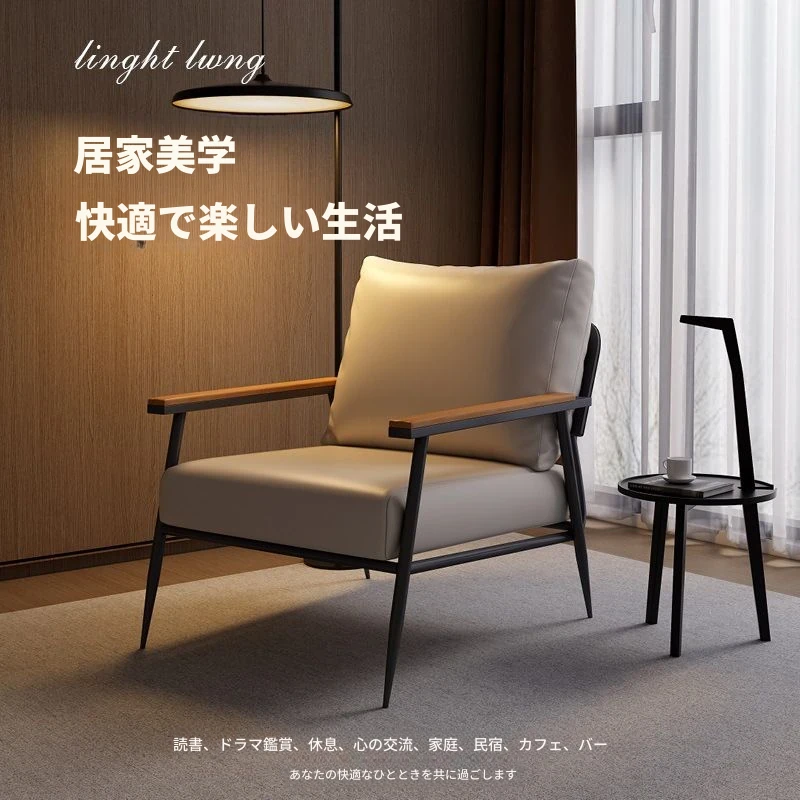 アメリカンスタイルのイエローシンプルモダンレザー肘掛け椅子|一人掛けミルクホワイトファブリックリラックスソファ|おしゃれなリビング家具で快適空間を演出!