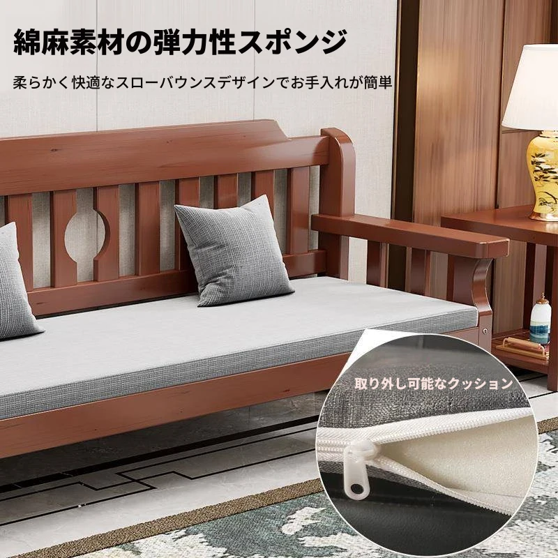 北欧スタイルの実木ソファセット - 冬夏兼用、コンパクトな小型リビングに最適な経済的なナチュラルウッドデザインのストレートソファ!おしゃれで機能的、心地よい空間を演出します。