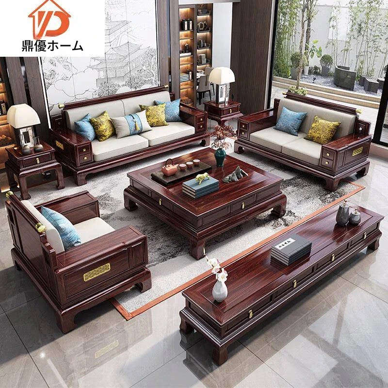 新中式ウ金木製モダンリビングソファー - 豪華な別荘や広々とした空間に最適!冬も夏も快適にお使いいただける新古典スタイルの実木製ソファ。上質なデザインで、あなたのリビングを格上げします!