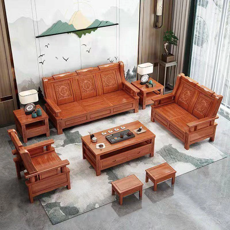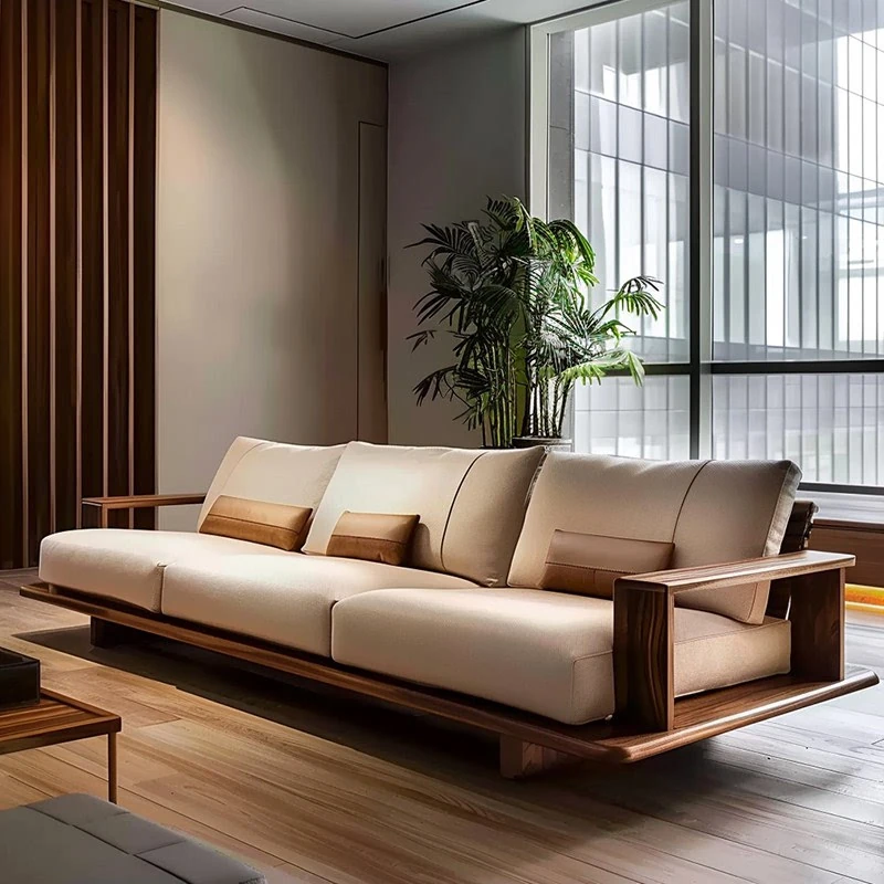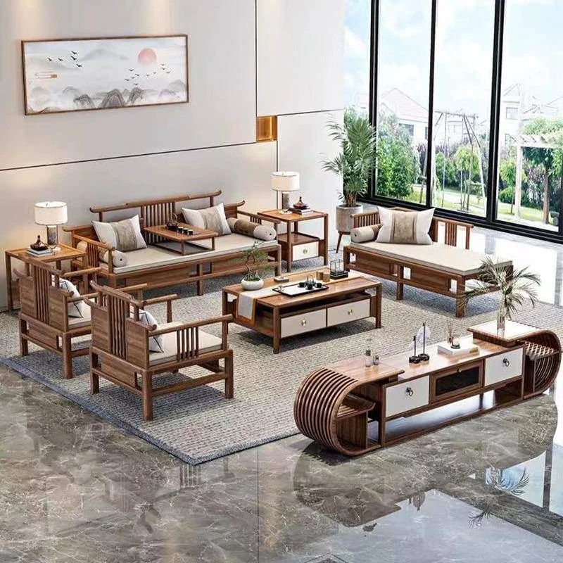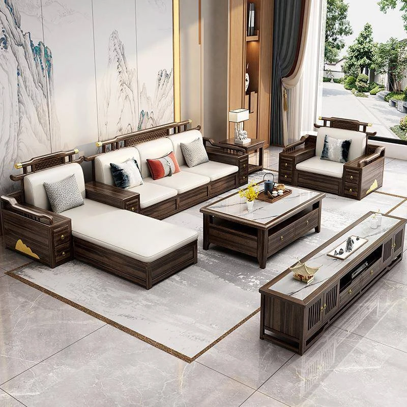 新中式デザインの無垢材ソファセット|モダンでラグジュアリーな大・小型リビングに最適|別荘やモデルルームにもぴったりなウッド家具