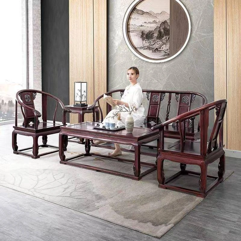 中華風の実木製サロンセット - 新古典風エレガントAEK宮椅子5点セット、明清様式のアンティークデザインで、あなたのリビングルームに高貴な雰囲気を演出します!