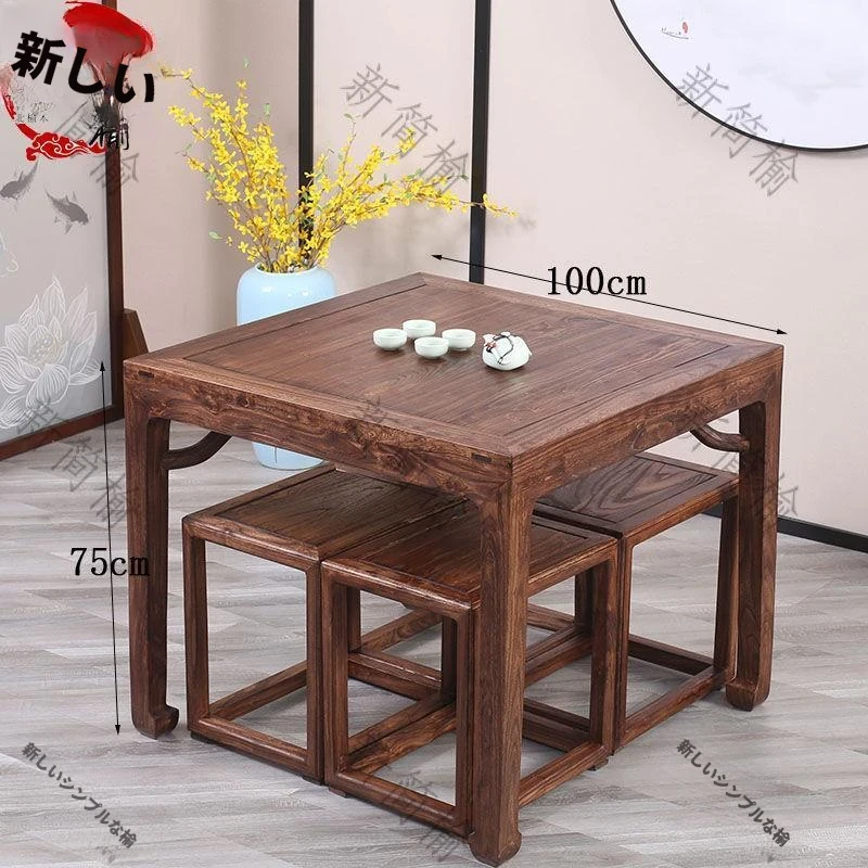 新中式デザインの老榆木製スクエアテーブル - 伝統的な茶卓やダイニングテーブル、ゲームテーブルとしても最適!高品質の無垢材を使用したアンティーク風八仙テーブルで、優雅なひとときを演出します。