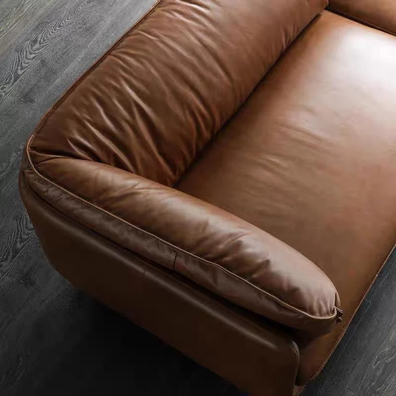 アメリカンレトロレザー製HUGソファー|オイルワックスレザー|モダン軽奢スタイル|イタリアンリビング|小型北欧シンプルデザイン|直排型で省スペースも実現!