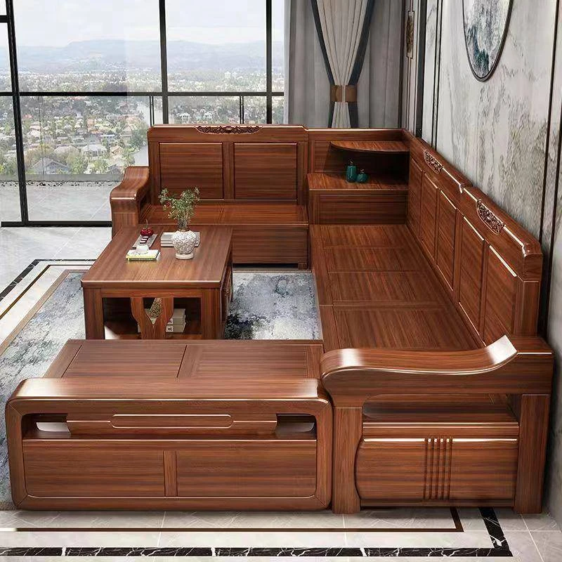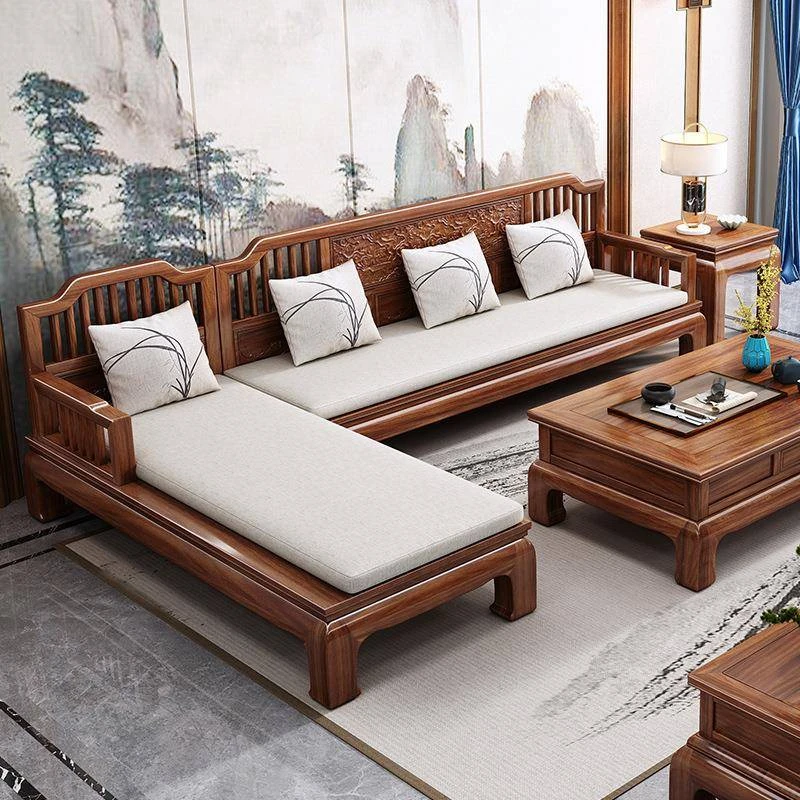 新しい中式ウッ金木製ソファセット - モダンでシンプル、冬夏兼用の収納付きコーナーリビング家具。心地よい空間を演出し、スタイリッシュなリビングを実現!