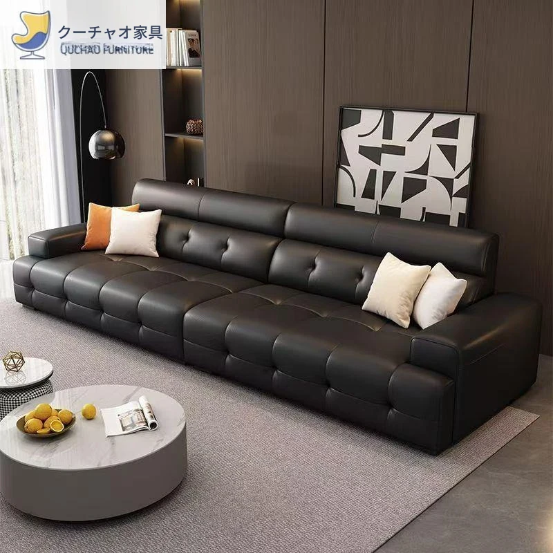 イタリアンミニマルデザインのモダンラグジュアリーリビングソファ - 猫の爪に強いレザー使用、広めの直線型コンビネーションソファで、快適な座り心地を実現!おしゃれな空間を演出します。