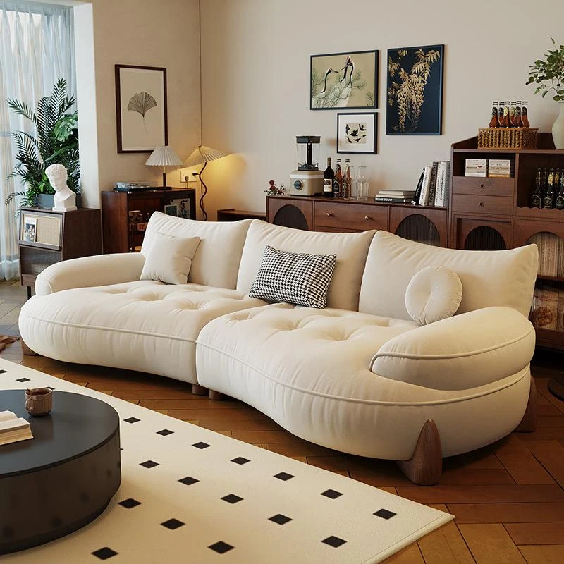 モダンでシンプルなクリーム風民宿ホテル直営アーチ型リビングルーム用ラテックス猫爪ソファ。デザイナーが手掛けた多人数用ソファで、快適さとスタイルを両立。あなたの特別な空間を演出します!