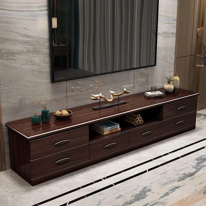 紫金檀木製のモダン中式テレビキャビネットセット - おしゃれなリビング空間を演出!伸縮式で収納力抜群、機能性とデザイン性を兼ね備えた実木製テレビ収納家具。
