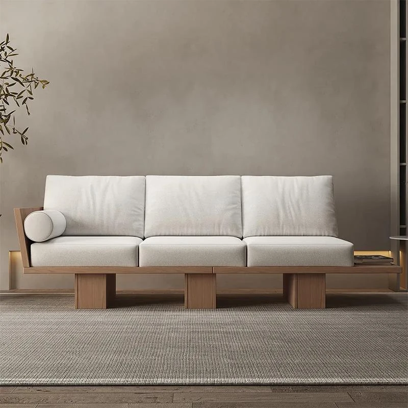 新作!和風の無垢材侘び寂びスタイル小型リビングソファ - シンプルでおしゃれな民宿やホテルにぴったりな布製ソファで、心地よいリラックスタイムをお届けします。