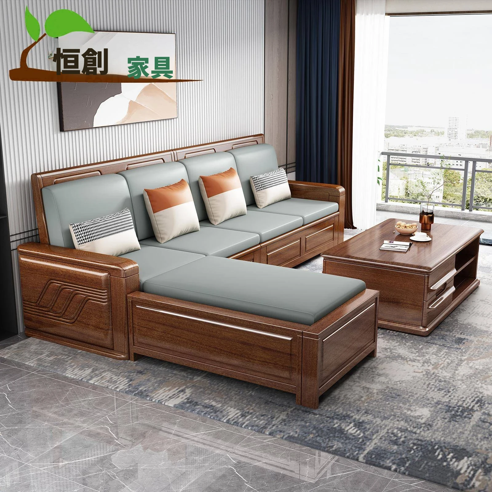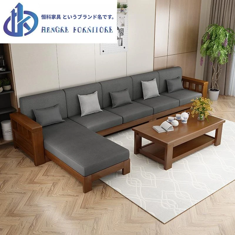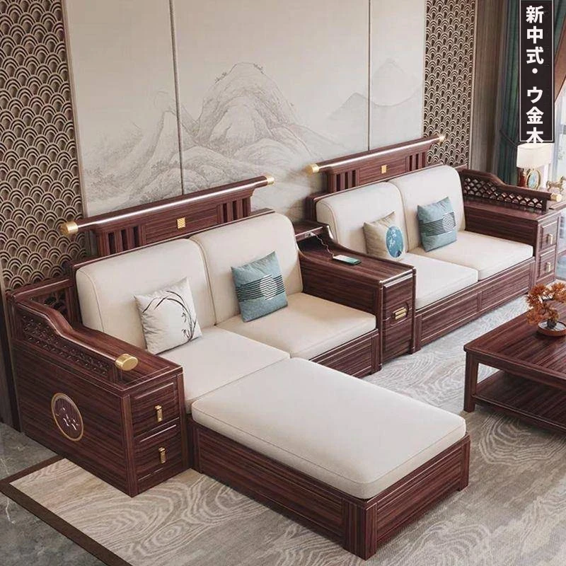 モダンでシンプルな新中式デザイン、実木製コーナーカウチソファ。小型住宅に最適で、冬も夏も使える快適なリビング家具。心地よい空間を演出し、スタイリッシュなライフスタイルを提案します。