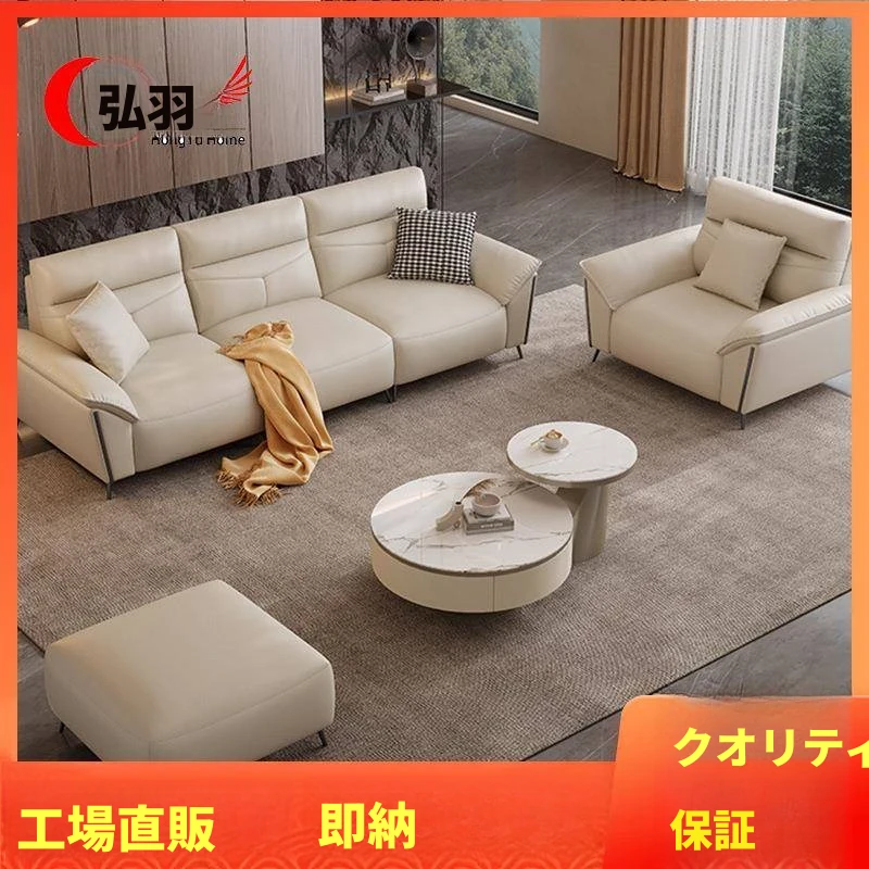 侘寂スタイル本革ソファ|モダンミニマリズム|ネット人気の小型リビング向けデザイナー直輸入・3〜4人用ソファセット