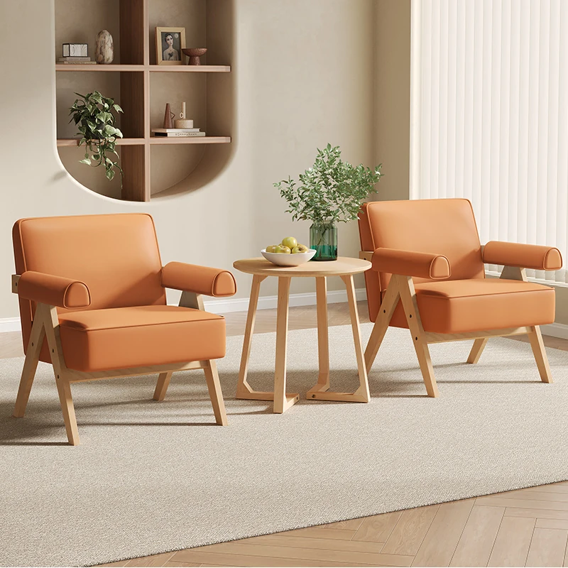 北欧スタイルの一人掛けソファチェア|リラックスできる木製デザイン|小型リビングやカフェに最適なコンパクトな二人掛け・三人掛けソファ|居心地抜群のラウンジ空間を演出!
