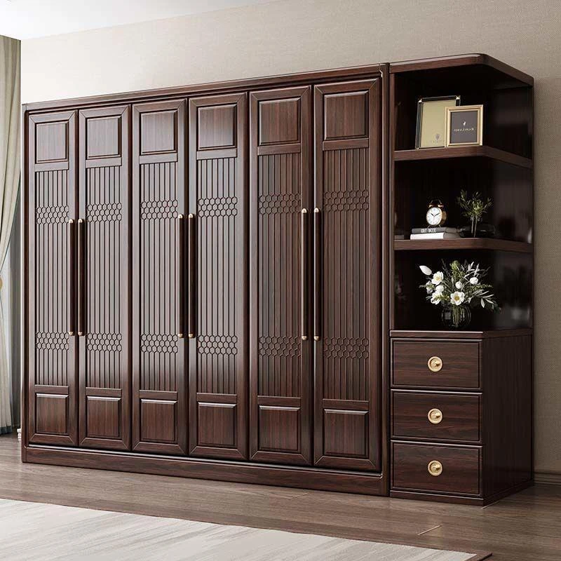 新中式スタイルの本格的な無垢材衣類収納棚 - 家庭用寝室に最適!3456扉で大容量、全て無垢材使用の高級家具、紫金檀木の美しさを引き立てます。収納力抜群で、スタイリッシュな空間を演出!