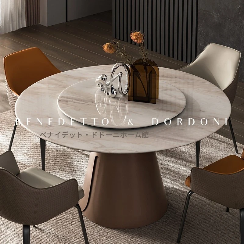 2024年新作!天然大理石ラウンドダイニングテーブル、回転式デザインでイタリアンラグジュアリーを体験。高級感あふれる軽やかなスタイル、2025年のトレンドを先取り!