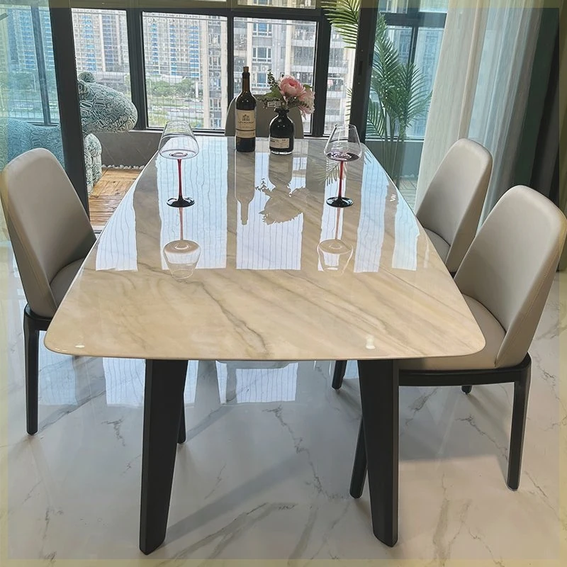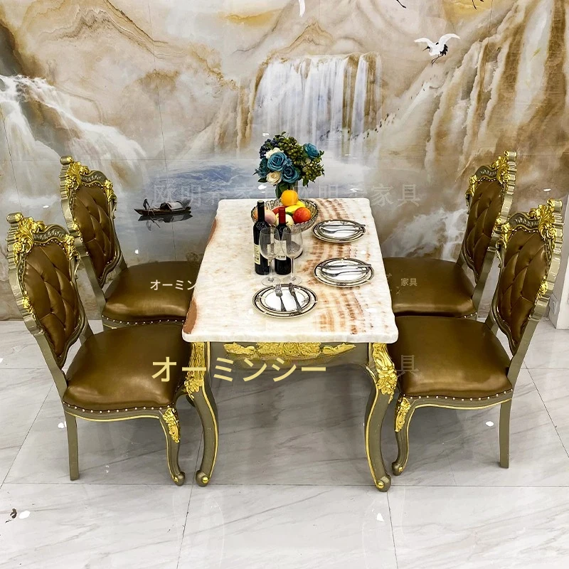 欧風天然木製ダイニングテーブルセット 大理石長方形テーブル アメリカンラグジュアリー 家庭用 おしゃれで快適な食卓を演出!