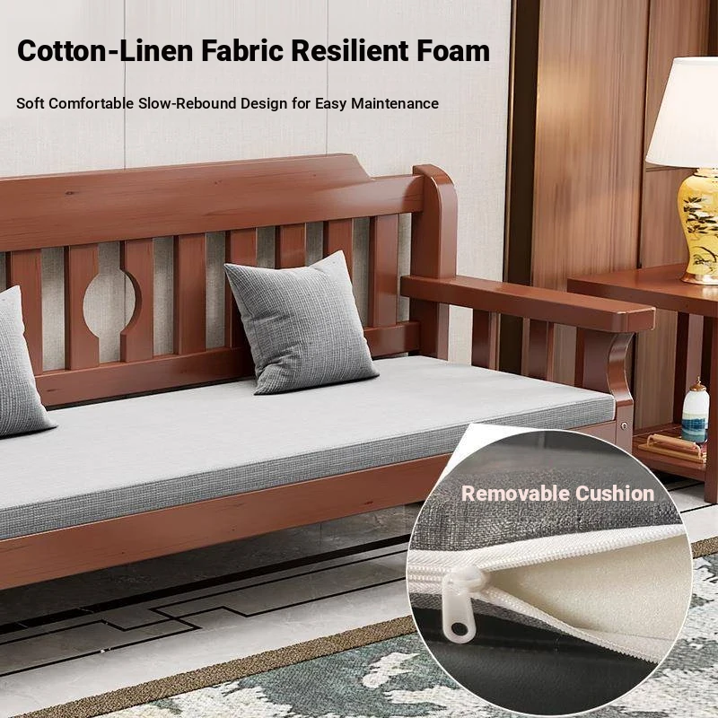 Modern Chinese Style Solid Wood Sofa Set for Small Spaces - Versatile Vintage Design for Winter and Summer, Perfect for Living Rooms, Offices, and Budget-Friendly Rural Homes.