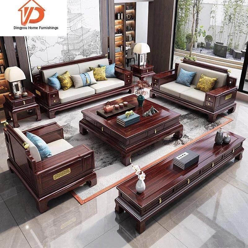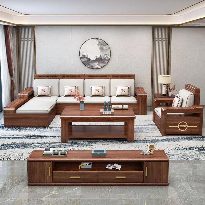 Modern Chinese Style Solid Wood Sofa Set - Versatile Design for Small and Large Spaces, Perfect for Villas and Complete Home Ensemble