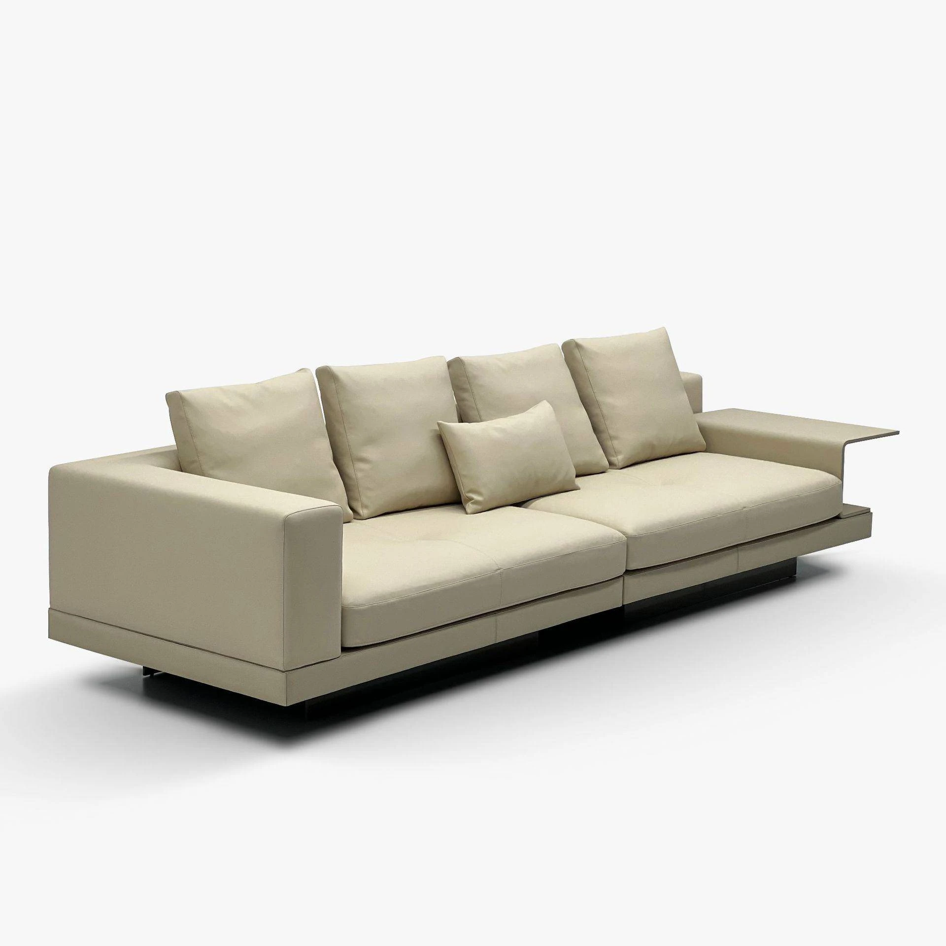 Italian Minimalist Connolly Leather Sofa with Steel Armrests - Designer’s Choice for Stylish Living Rooms, Featuring Down-Filled Cushions and Premium Leather Upholstery. Perfect for Modern Comfort!