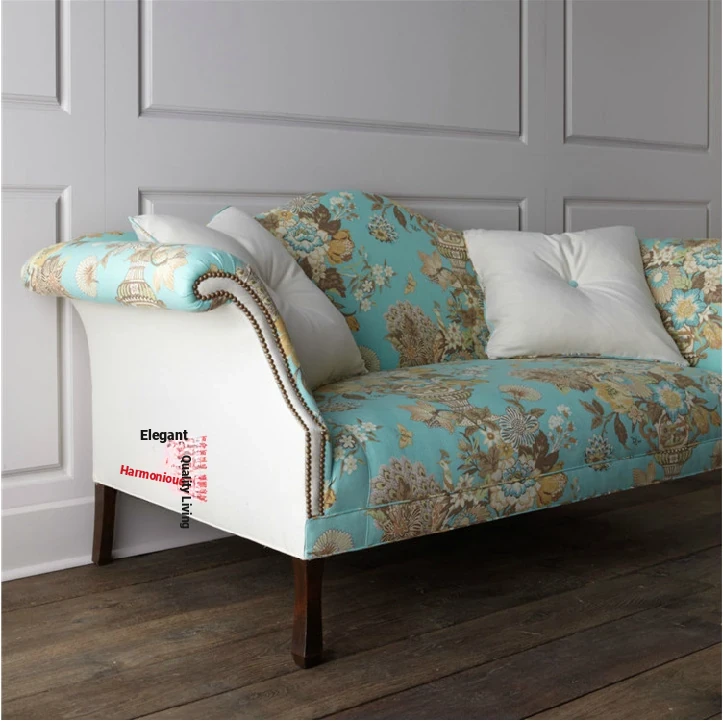 Stylish American-French Printed Fabric Double Sofa - New Classical & Post-Modern Design for Clubhouses, Photography Studios, and Villas