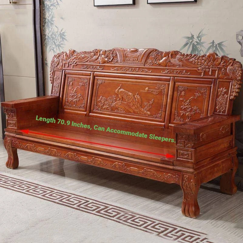 Classic Chinese Solid Wood Sofa Set in Ming and Qing Style - Elegant Red Finish - Perfect for Your Living Room - Comfortable 3-Seater - Shop Now for Timeless Beauty and Quality!