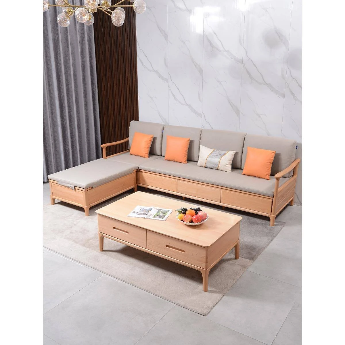 Elegant Beech Wood Storage Sofa Set with Drawers – Perfect for Small Spaces in New Chinese Style Living Rooms, Featuring a Chic Daybed Design