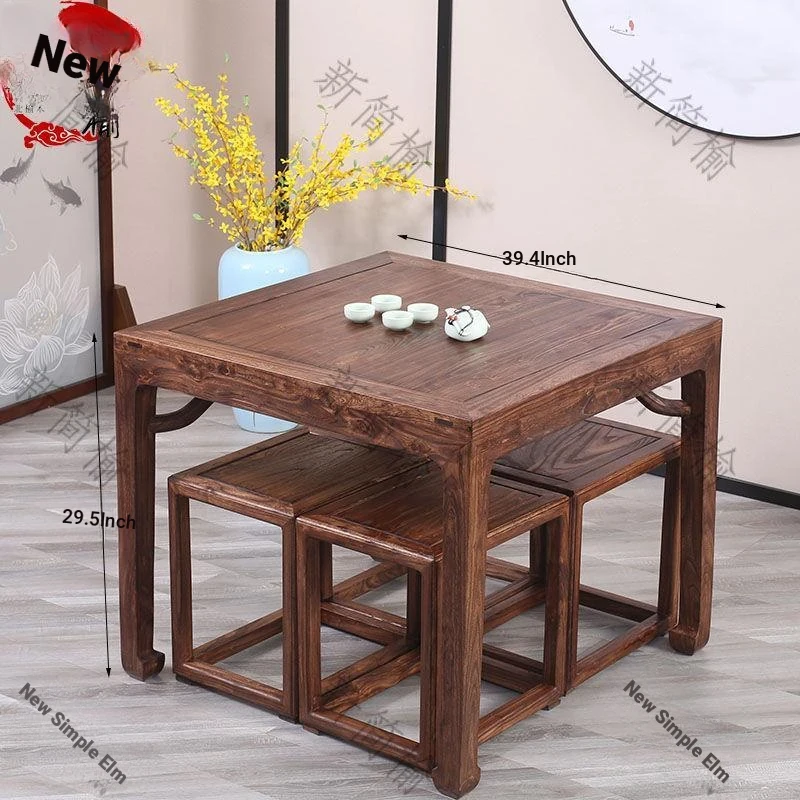 New Chinese Style Solid Old Elm Square Table - Vintage Tea Table, Dining Table, Chess Table, and Antique Baixian Table - Crafted from Genuine Wood for Timeless Elegance