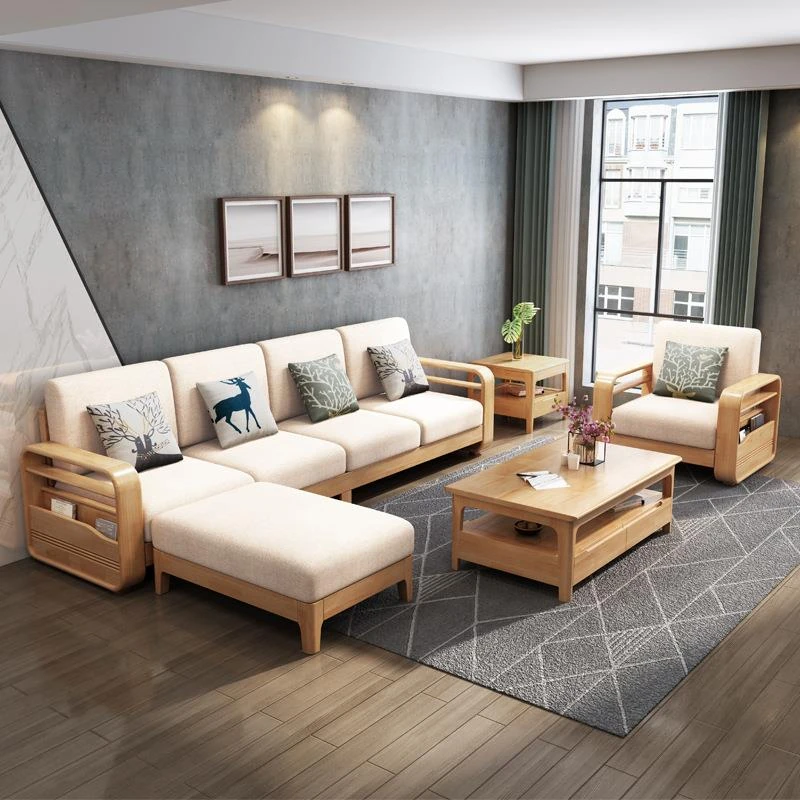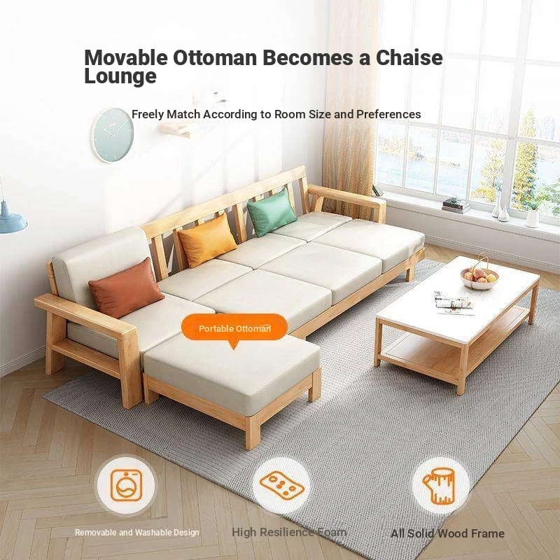 Nordic Solid Wood Sofa - Affordable Fabric Chaise Lounge Corner Sofa Set for Small Spaces, Modern Minimalist Design
