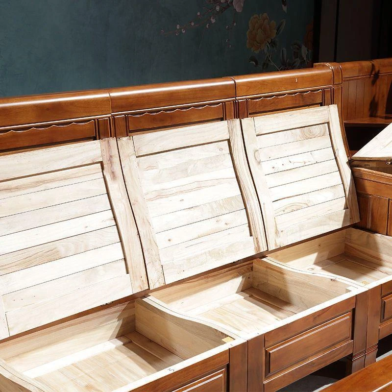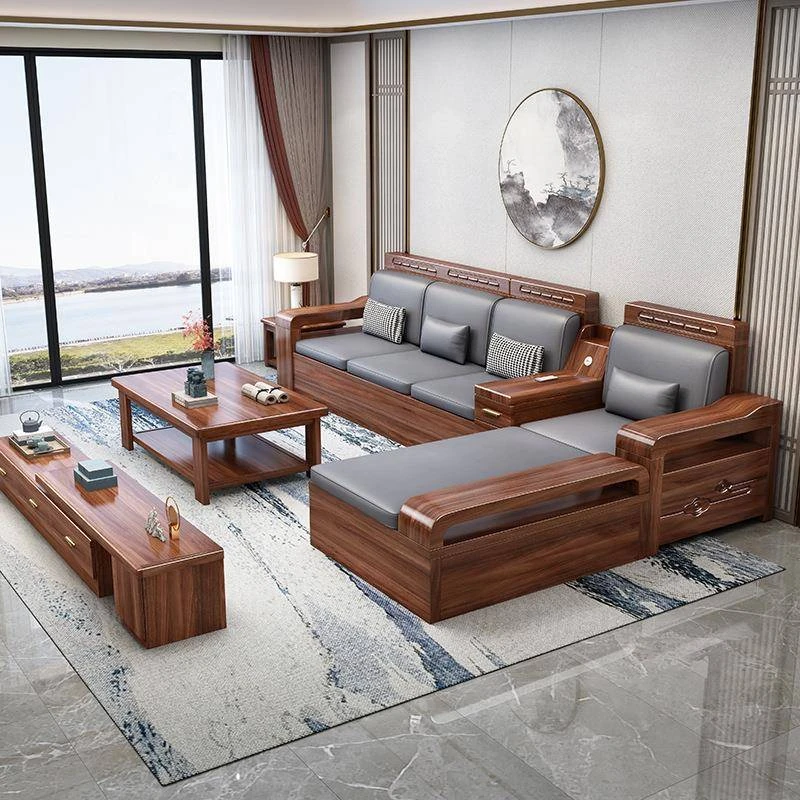 Walnut Solid Wood Sofa Set - Versatile Winter/Summer Use, Modern Chinese Style, Storage Corner Chaise Lounge for Living Room