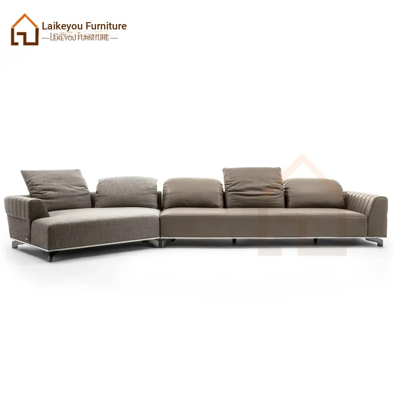 Italian Designer LONGHI Minimalist Large Villa Living Room Fabric Corner Sofa - Spacious and Stylish Seating for Multiple Guests