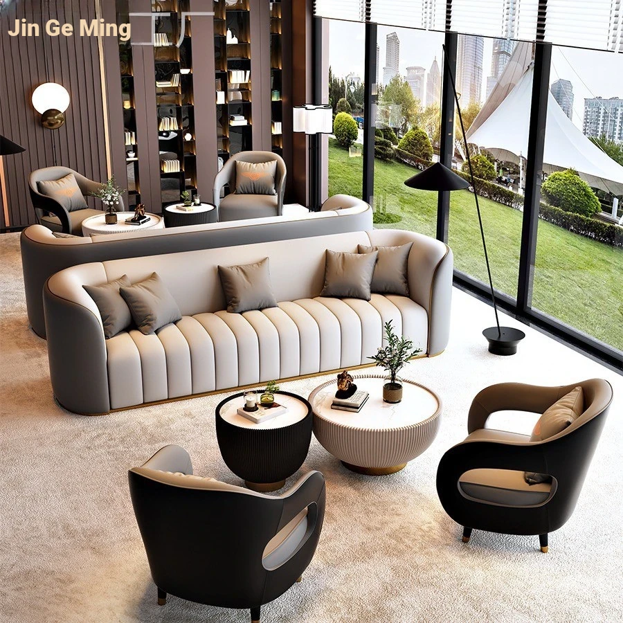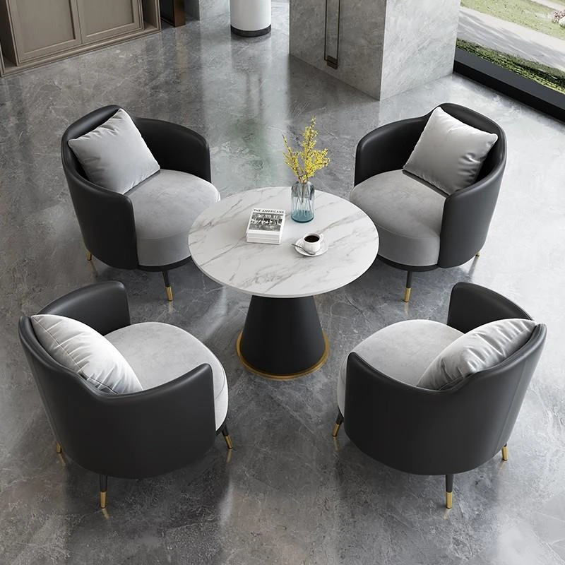 Modern Minimalist Luxury Sofa and Coffee Table Set for Sales Office and Hotel - Includes Small Round Negotiation Table and Reception Chairs for Stylish Meetings