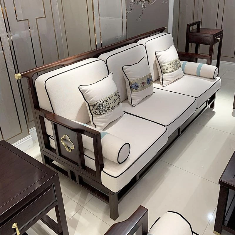 Modern Minimalist New Chinese Style Sofa Set - Black Walnut Solid Wood Zen Fabric Sofa for Small Spaces, Perfect for Your Living Room Furniture