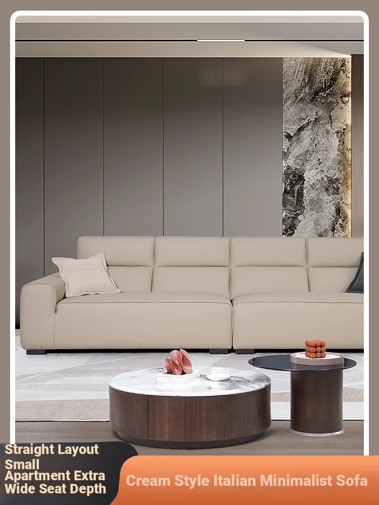 Creamy Minimalist Italian Style Modular Sofa for Small Spaces - High-Quality Cat Paw Leather Sectional for Modern Living Room