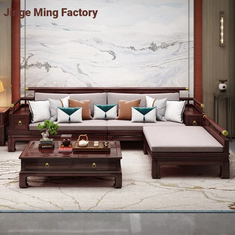 Elegant Blackwood Solid Wood Sofa - Versatile Chinese Style Living Room Set for Small Spaces, Ideal for Year-Round Use with Storage Chaise Lounge. Perfect for Cozy Homes!