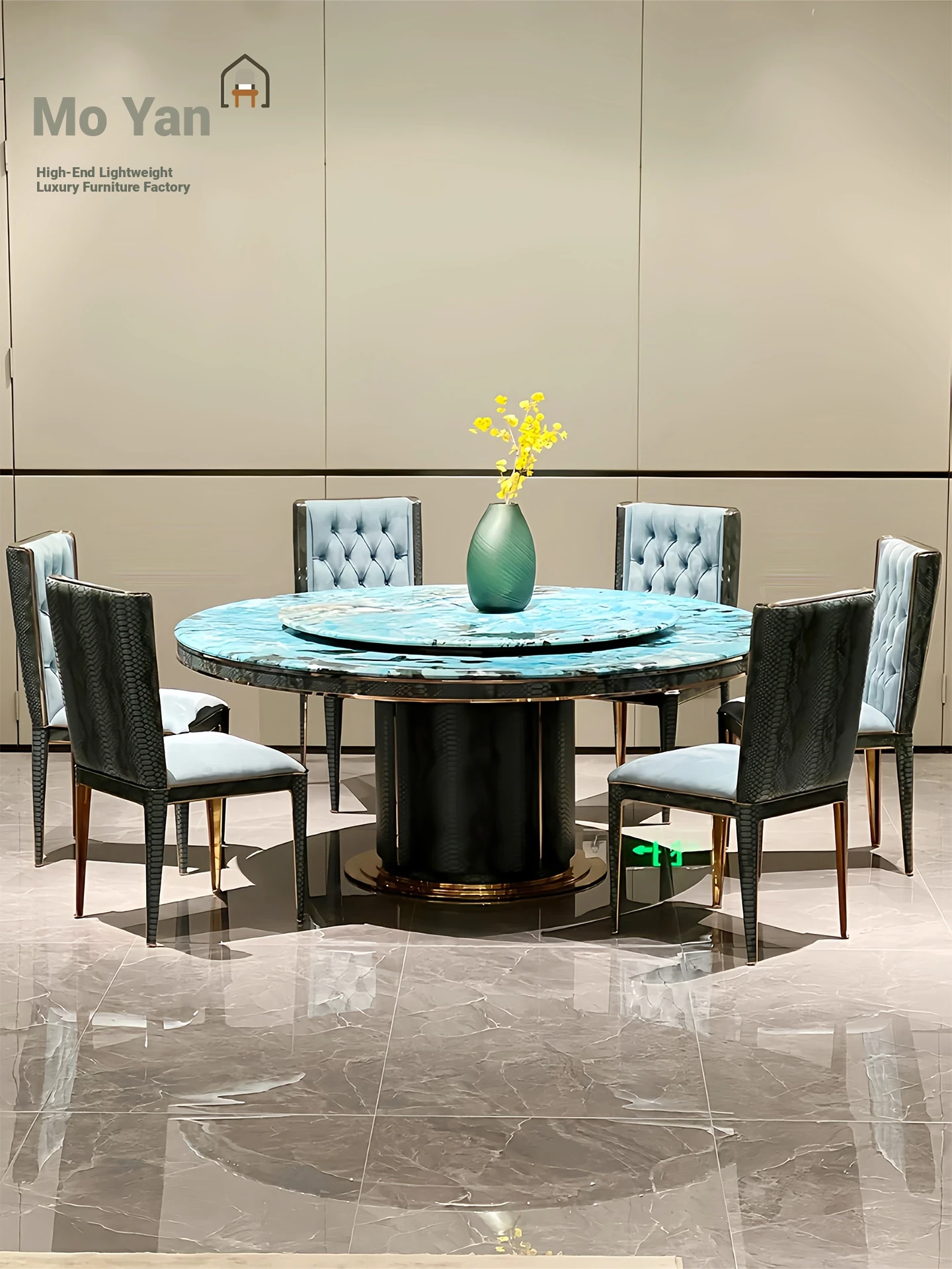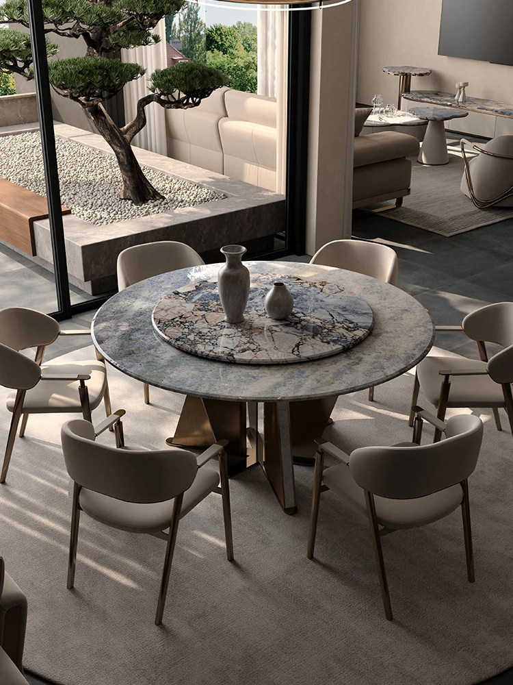 Luxury Round Marble Dining Table Set for Villa - Elegant Modern Design with Chic Chairs – Perfect for Spacious Living Areas and Contemporary Home Décor