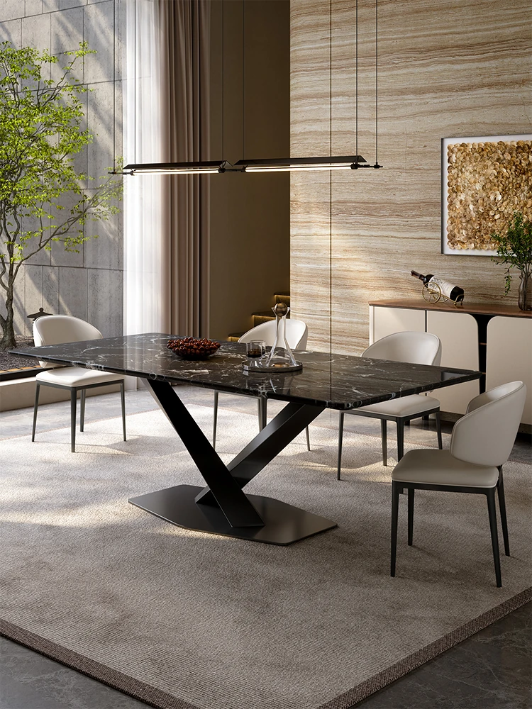 Black Rose Luxury Marble Dining Table - Natural Italian Minimalist Rectangle Design for High-End Home Use, Elegant and Creative Dining Experience