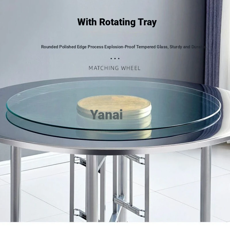 High-End Italian Style Round Dining Table with Rotating Tray – Premium Natural Microcrystalline Stone for Small Homes