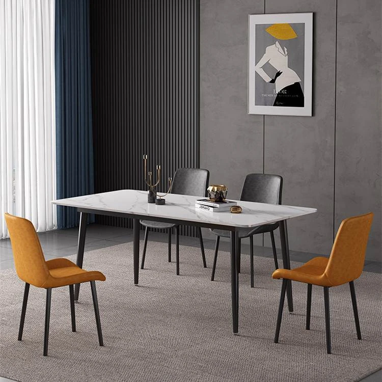 2025 Premium Design Platinum Diamond Natural Luxury Rectangular Dining Table with Carbon Fiber and Solid Wood Legs - Elegant Dining Set for Upscale Interiors