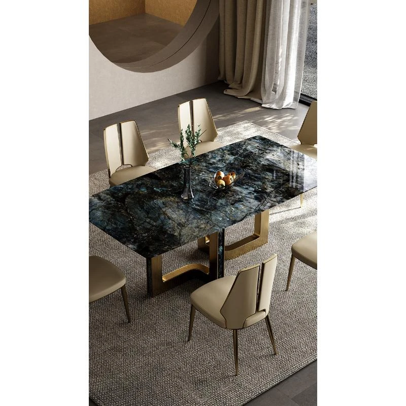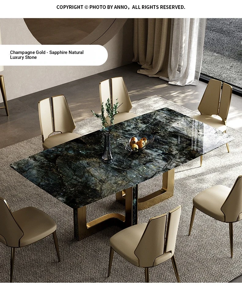 Dining table/78.74in/natural sapphire/champagne gold