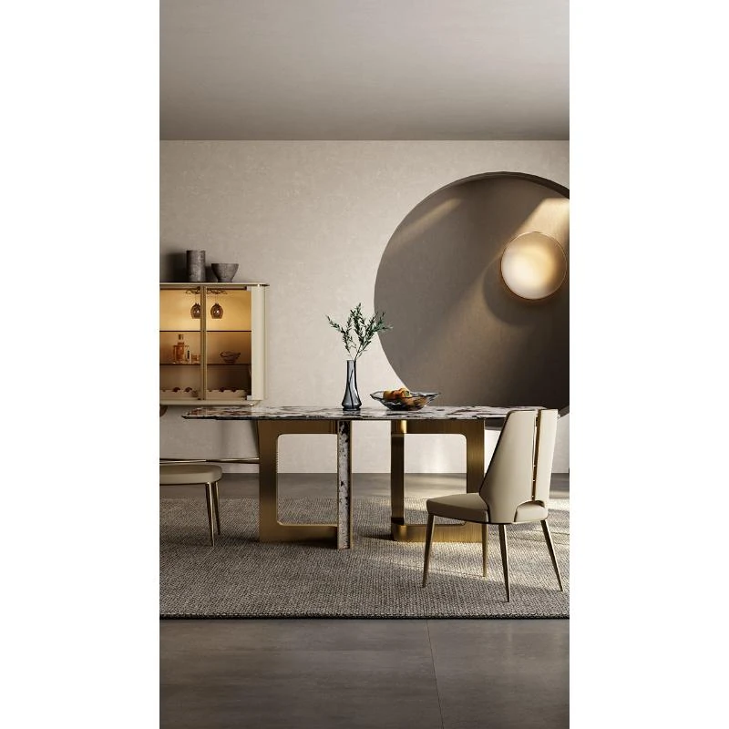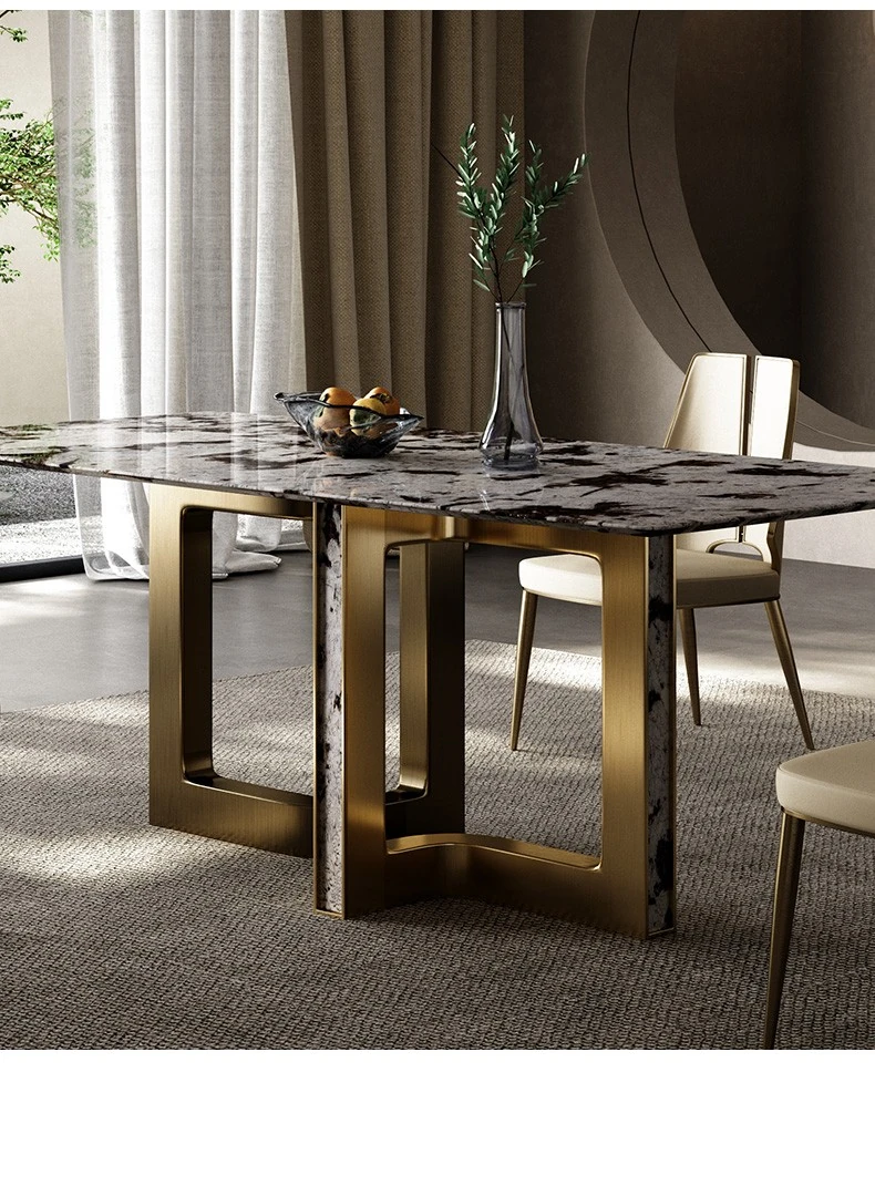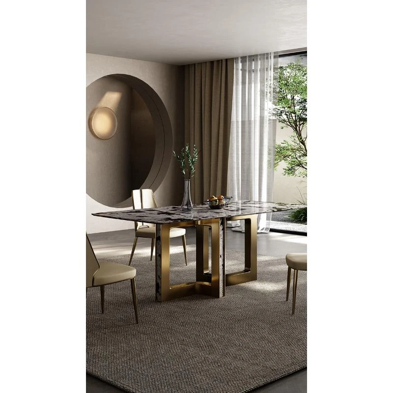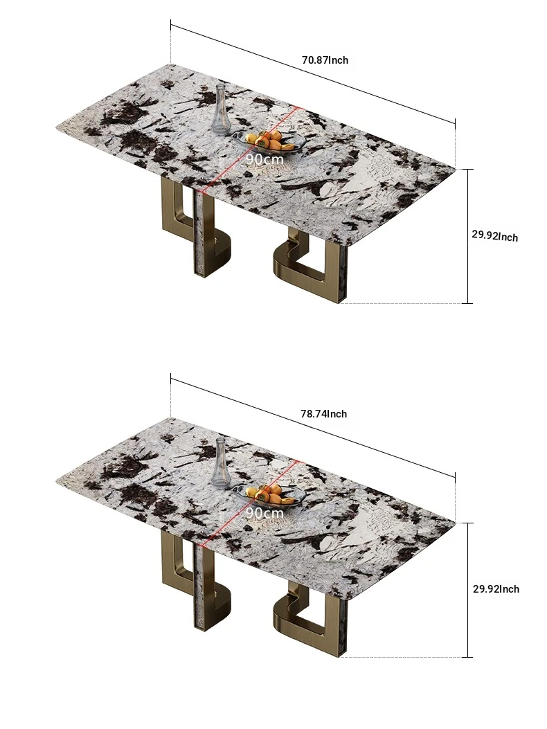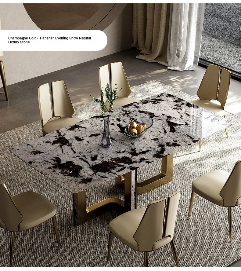 Dining table/78.74in/natural Tianshan Twilight Snow/champagne gold