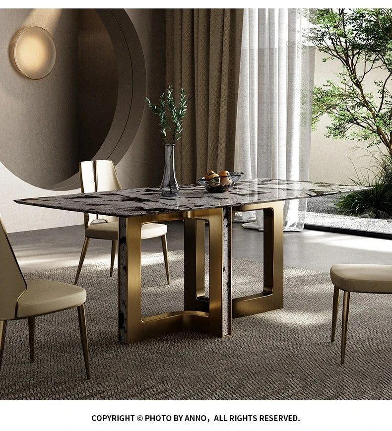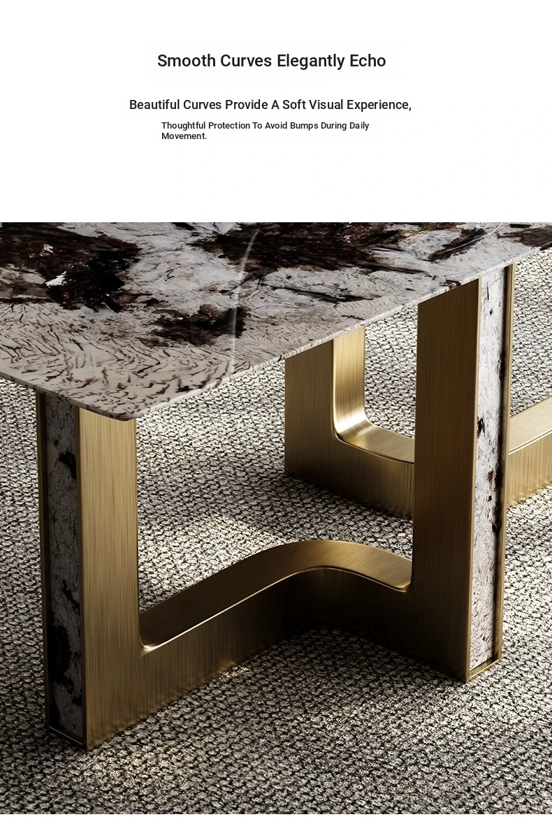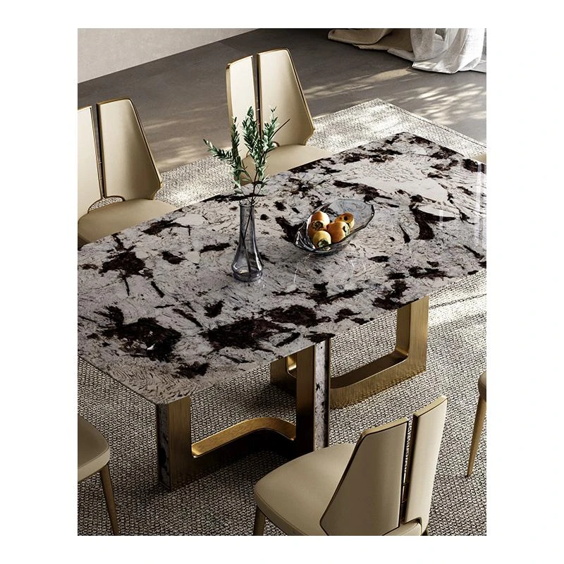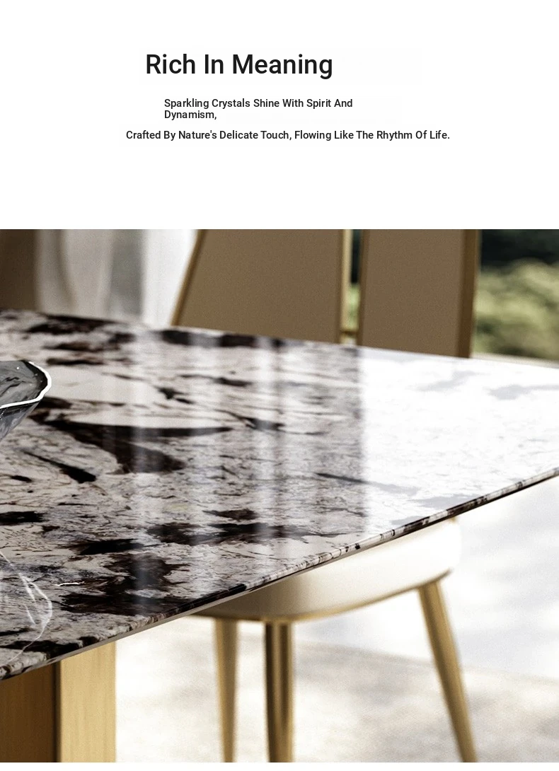 Dining table/78.74in/natural Tianshan Twilight Snow/champagne gold