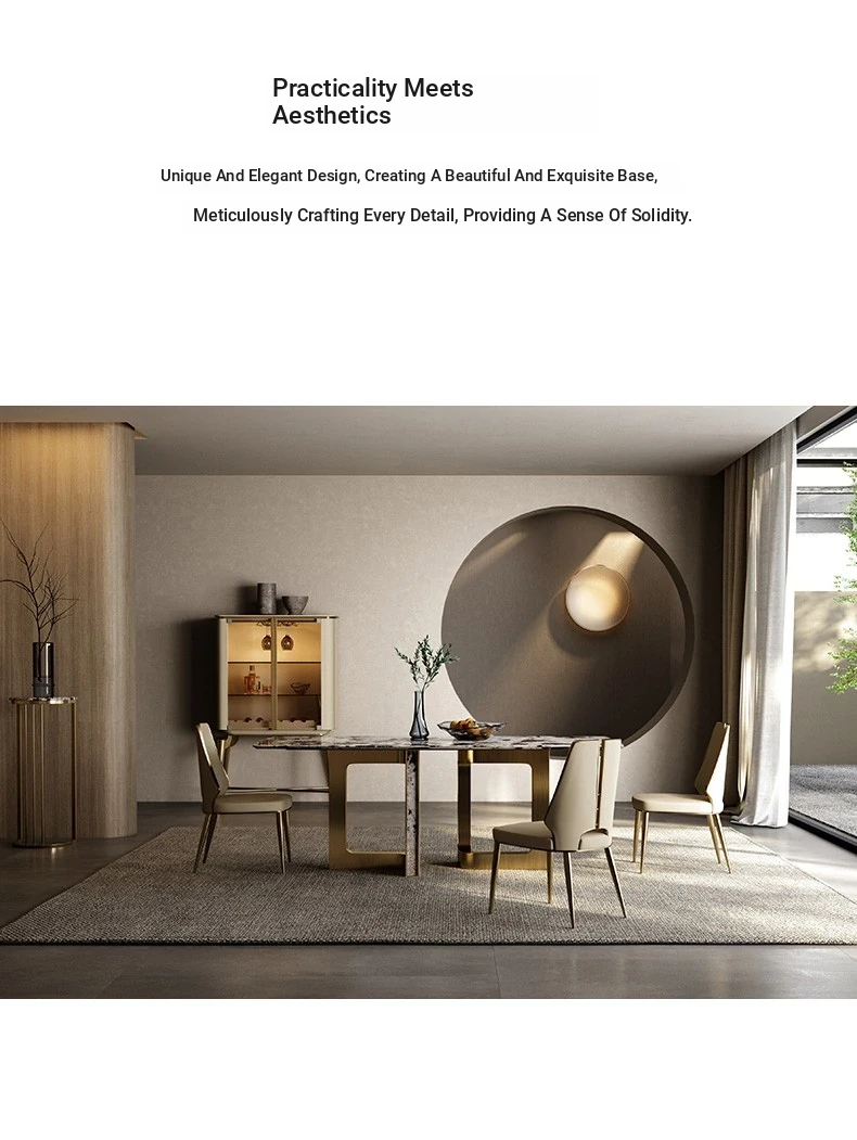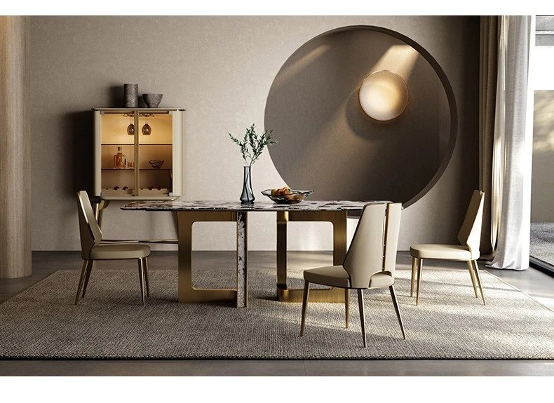 Dining Table/78.74in + Dining Chair * 6/Natural Tianshan Muxue/Champagne Gold