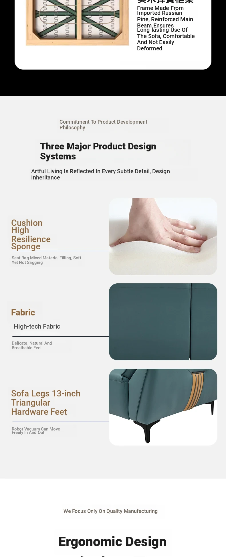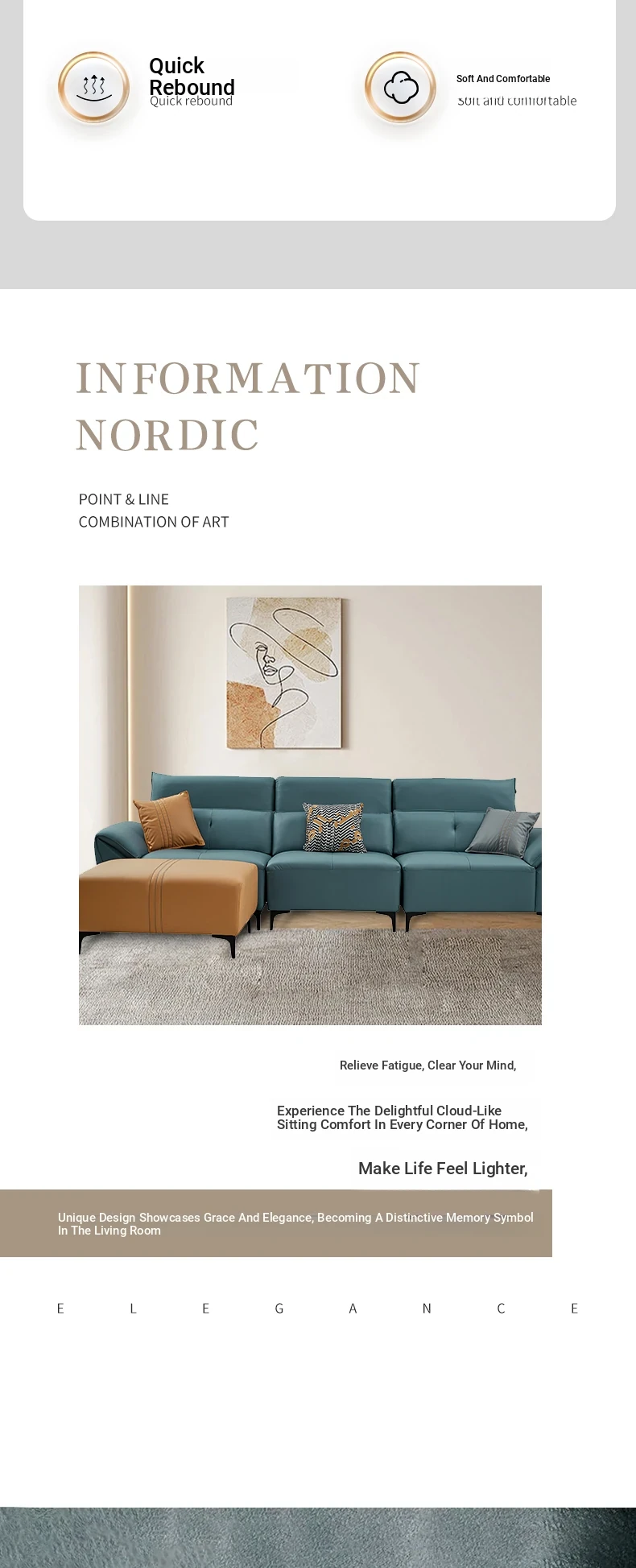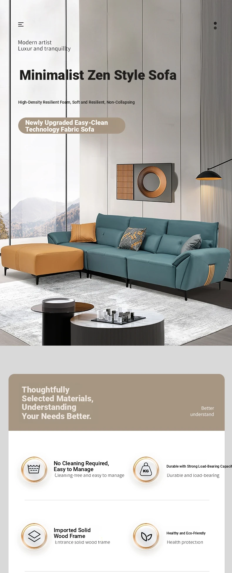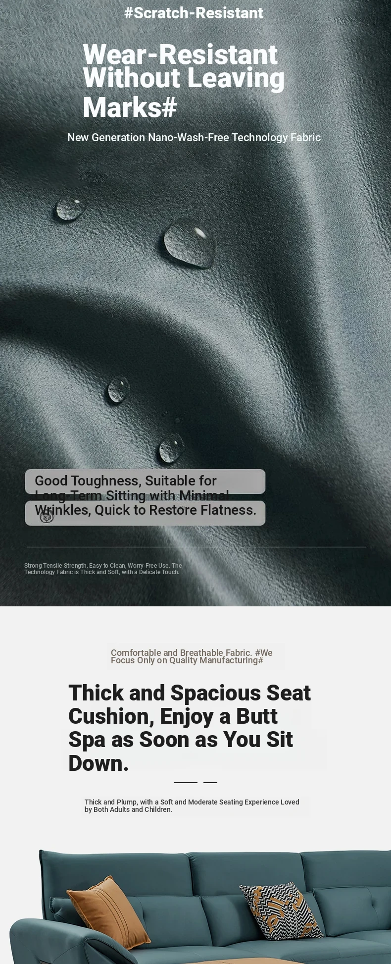 2024 New Trendy Tech Fabric Sofa for Small Living Rooms - Modern Nordic Style Minimalist Three-Seater Sofa Set