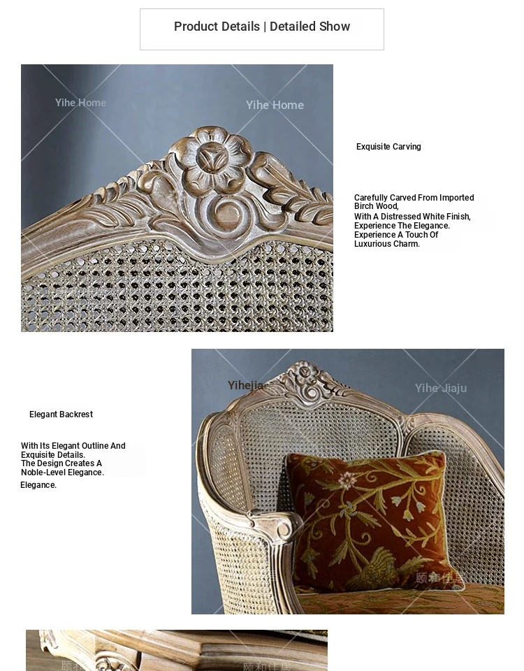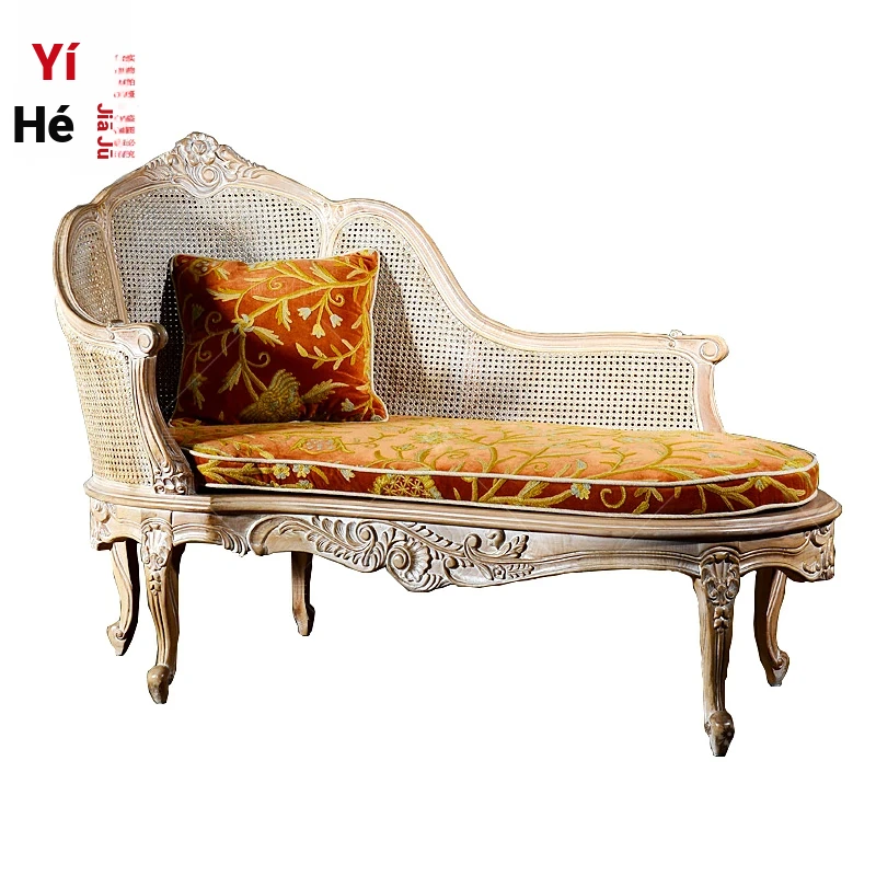 American Country Style Solid Wood Carved Rattan Chaise Lounge - New Classical Photography Chair with Vintage French Design for Relaxation and Style