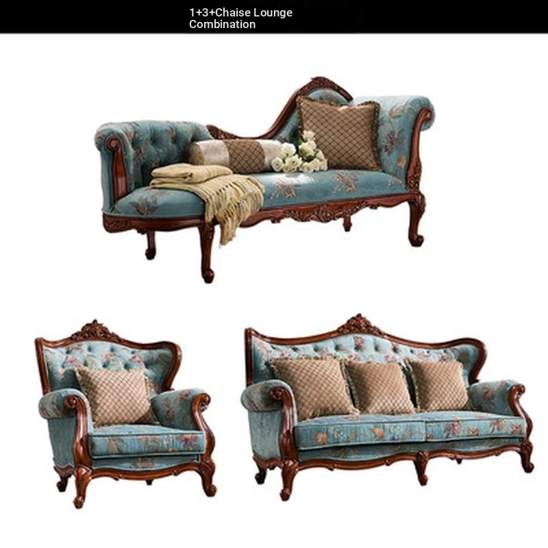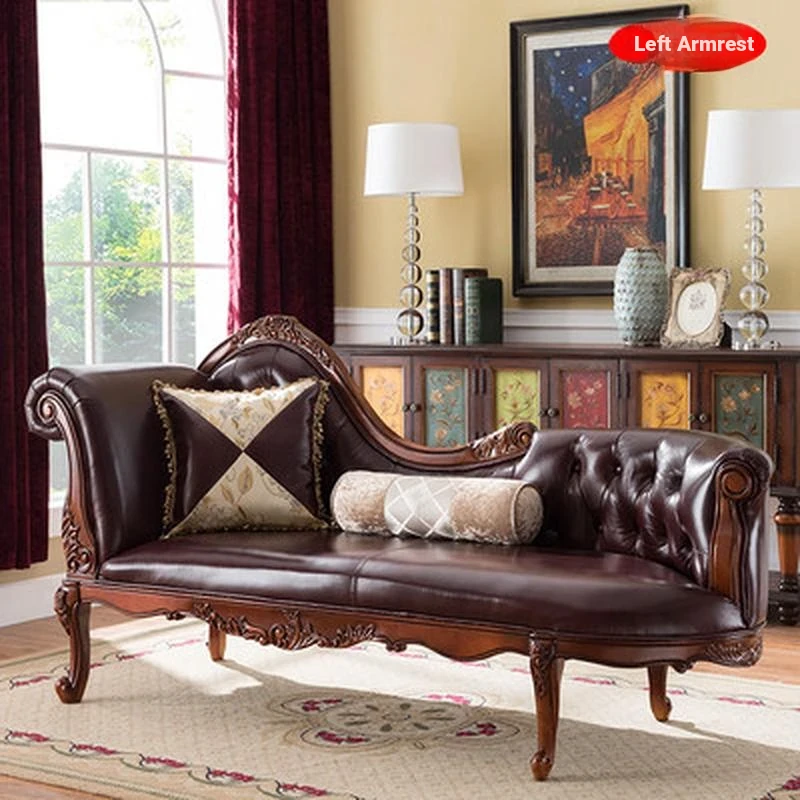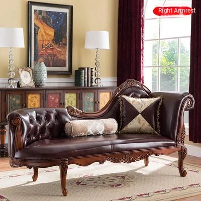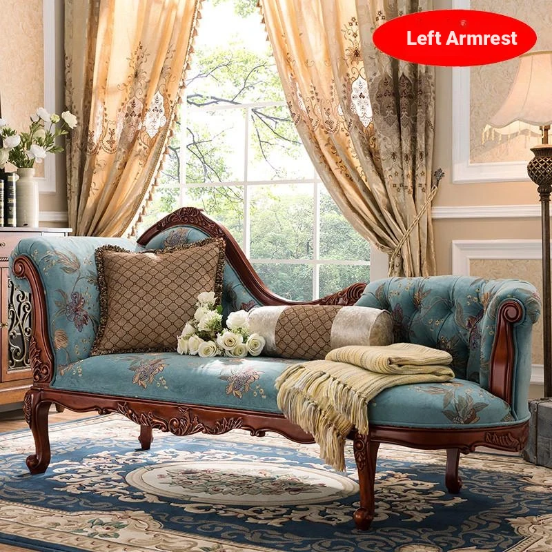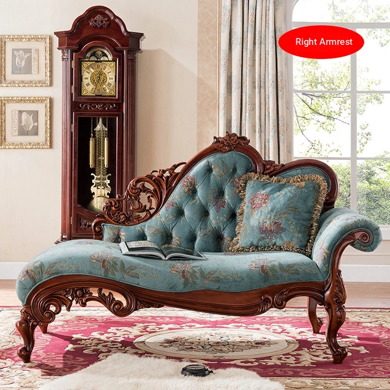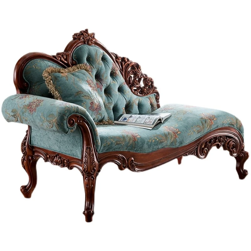 American Solid Wood Chaise Lounge Sofa - Elegant European Style Upholstered Chair for Living Room, Bedroom, and Balcony - Chic and Comfortable Recliner for Luxury Leisure Moments