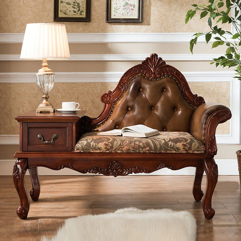 American Style Solid Wood Chaise Lounge - Multifunctional Recliner for Living Room, Single Sofa Chair for Bedroom, Elegant Daybed for Small Spaces, Cozy Relaxation Chair