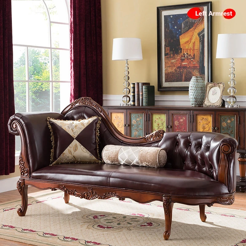Leather chaise longue right armrest 78.74in*25.98in*38.98in