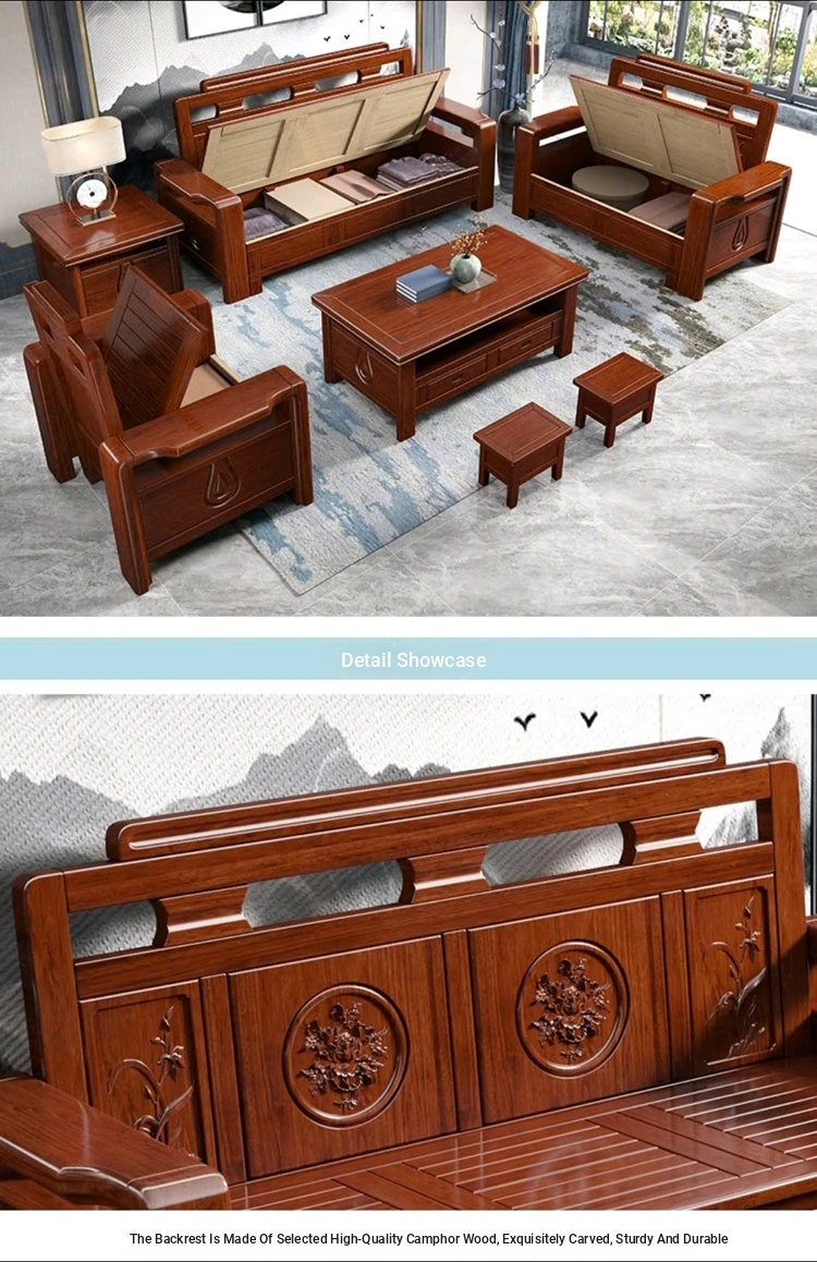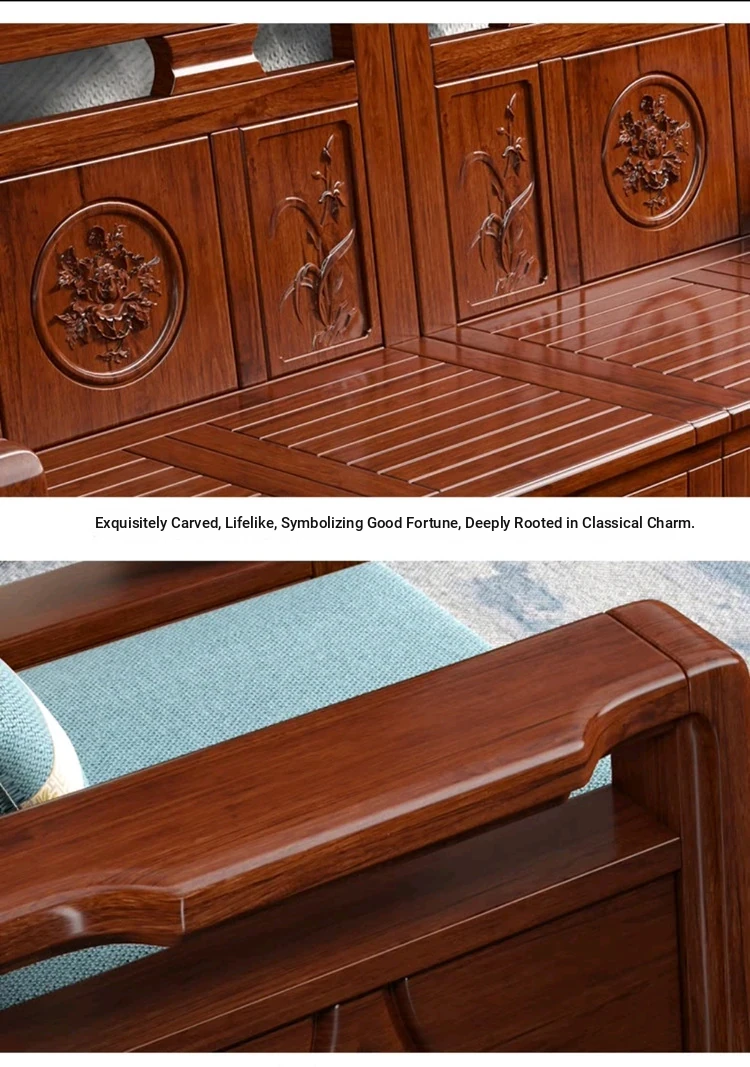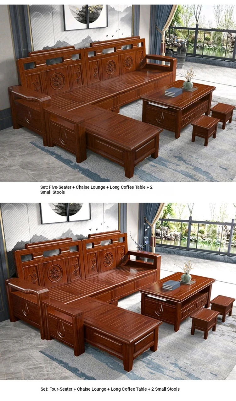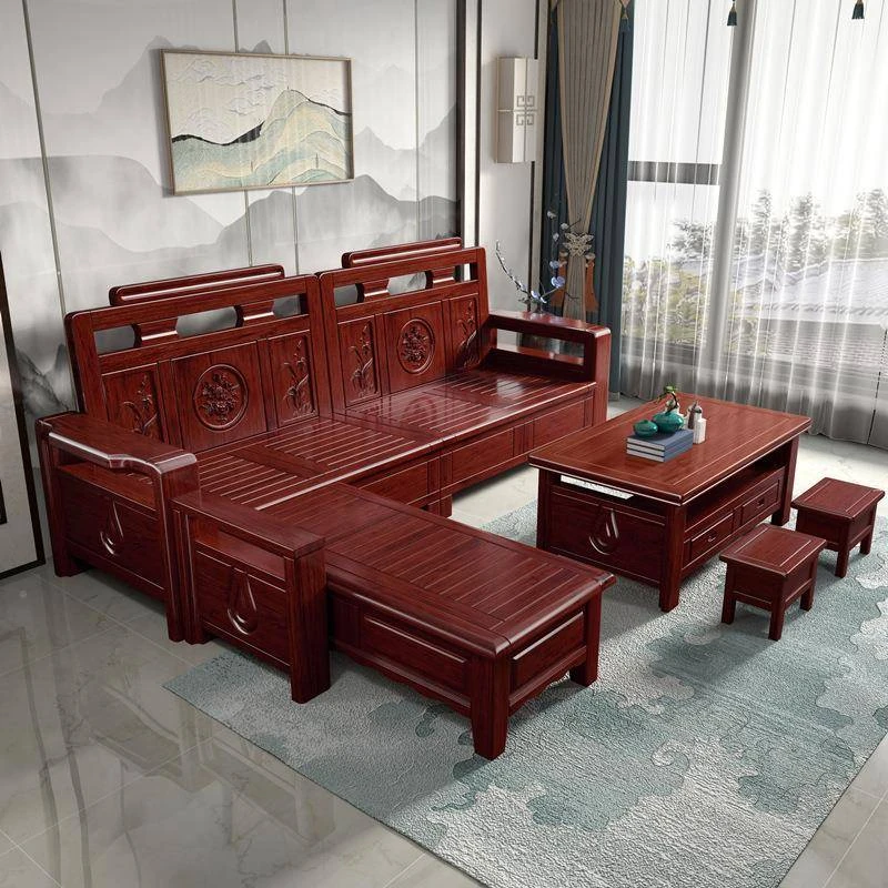 Chinese Antique-Style Carved Fragrant Wood Sofa Set 0011 - Versatile Corner Design with Storage Space, Perfect for Winter and Summer Use, Elegant and Functional