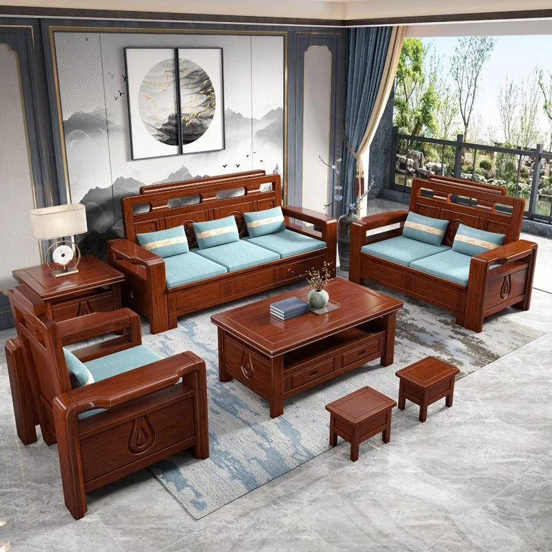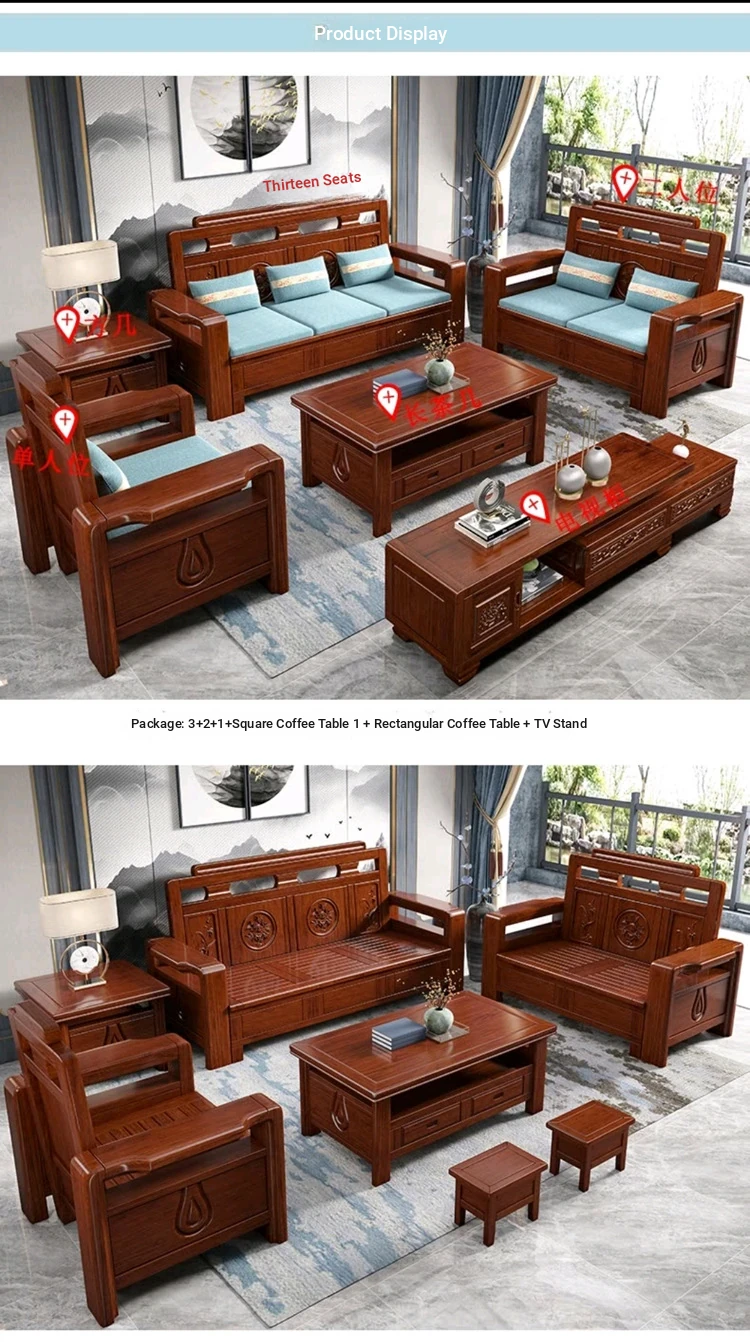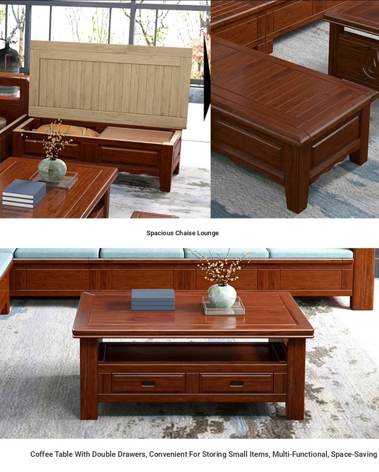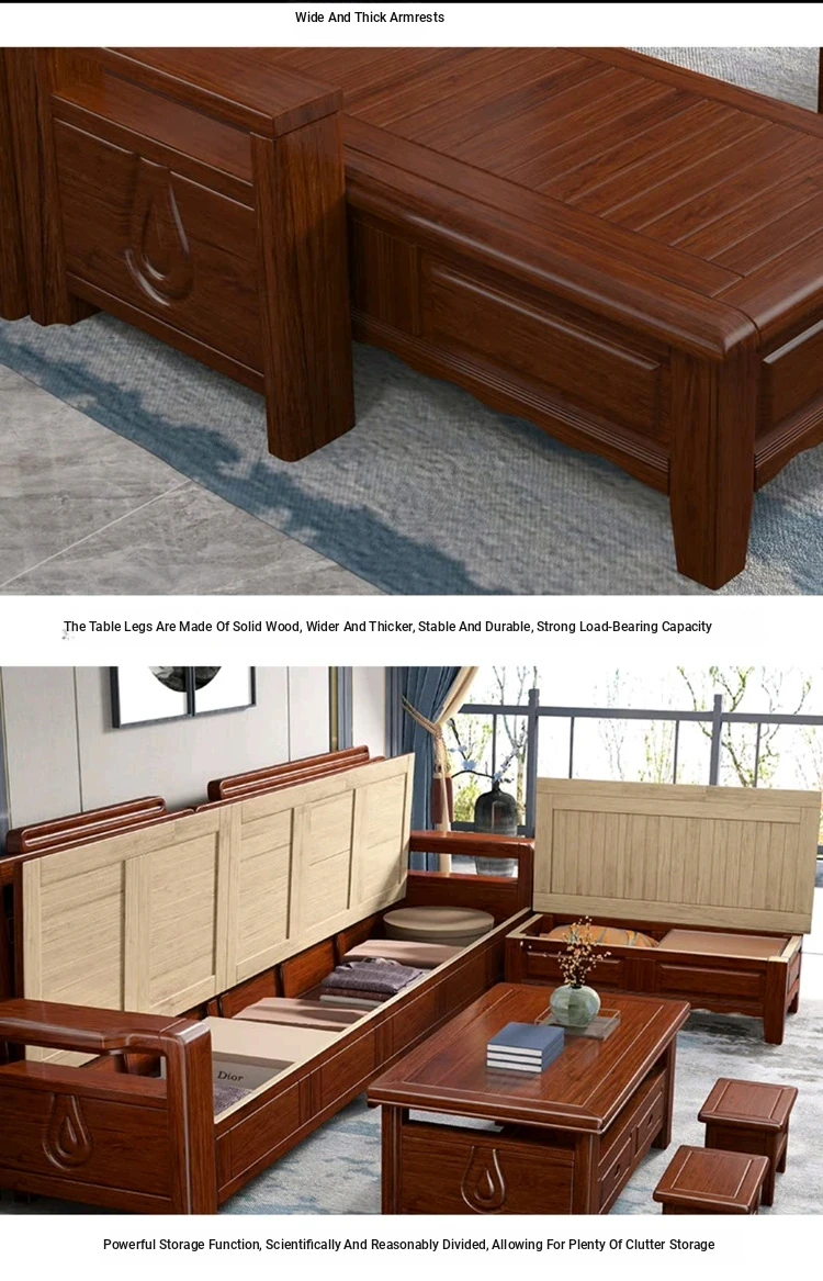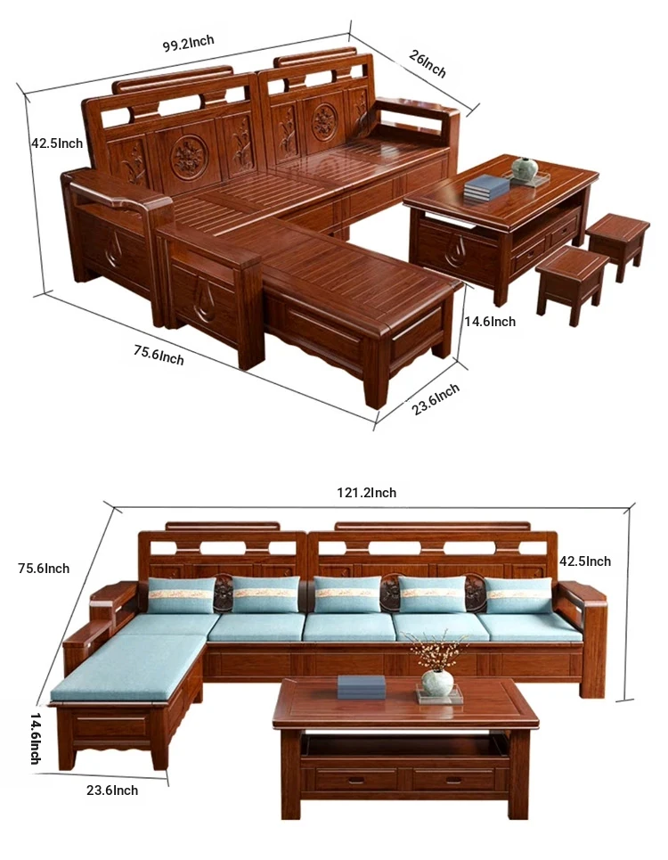 Chinese Antique-Style Carved Fragrant Wood Sofa Set 0011 - Versatile Corner Design with Storage Space, Perfect for Winter and Summer Use, Elegant and Functional