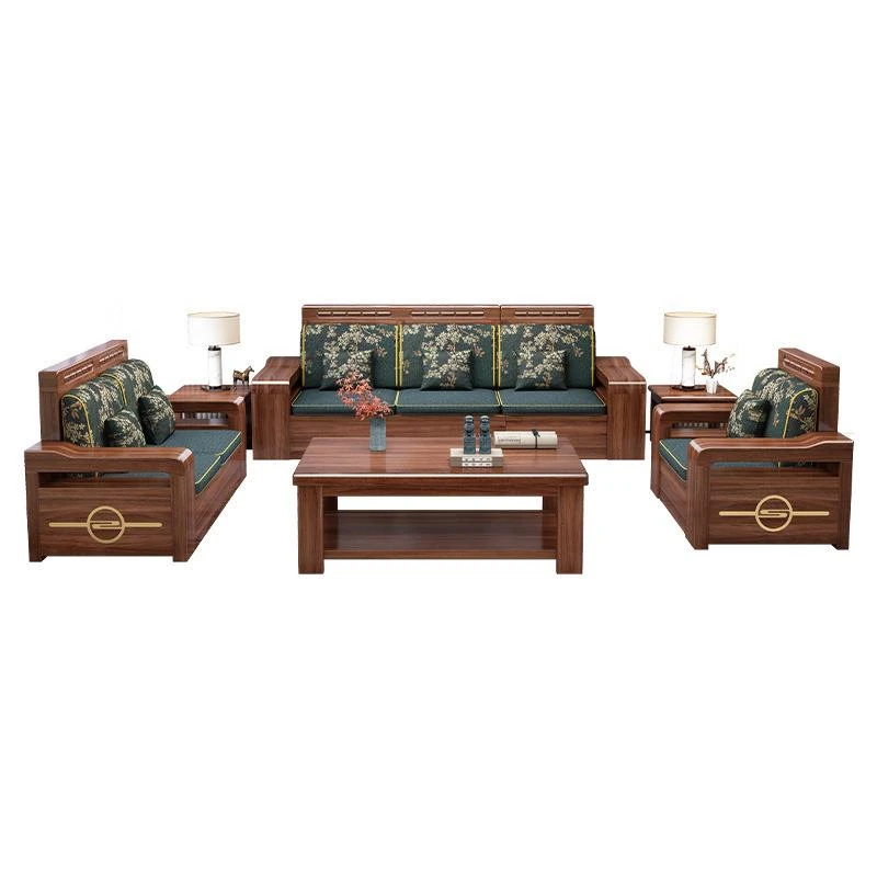 Chinese Walnut Wood Sofa Set - All Solid Wood, Versatile for Winter and Summer, Corner L-Shaped Chaise Lounge with Storage for Your Living Room