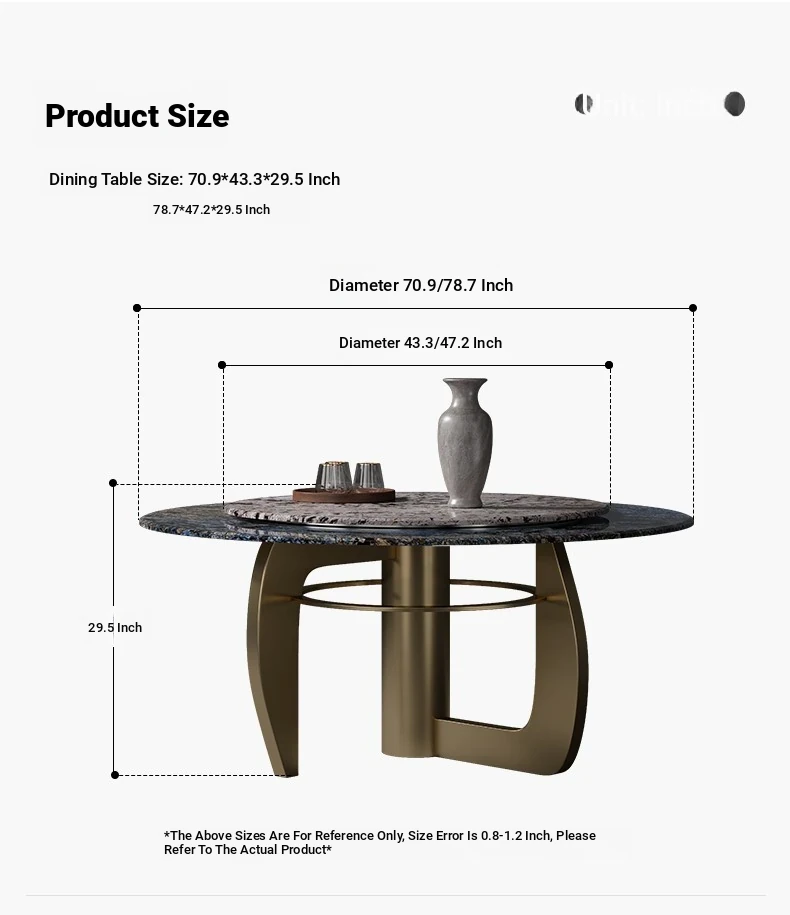 70.87in Round Dining Table/Victoria Blue Face + Tianshan Muxue Luxury Stone Turntable