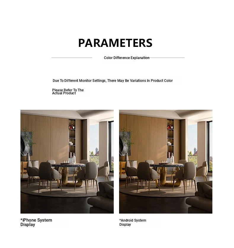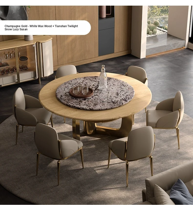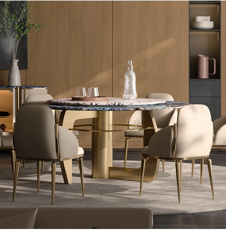 70.87in Round Dining Table/Victoria Blue Face + Tianshan Muxue Luxury Stone Turntable + TY1062.99 inicrofiber Leather Dining Chair * 6